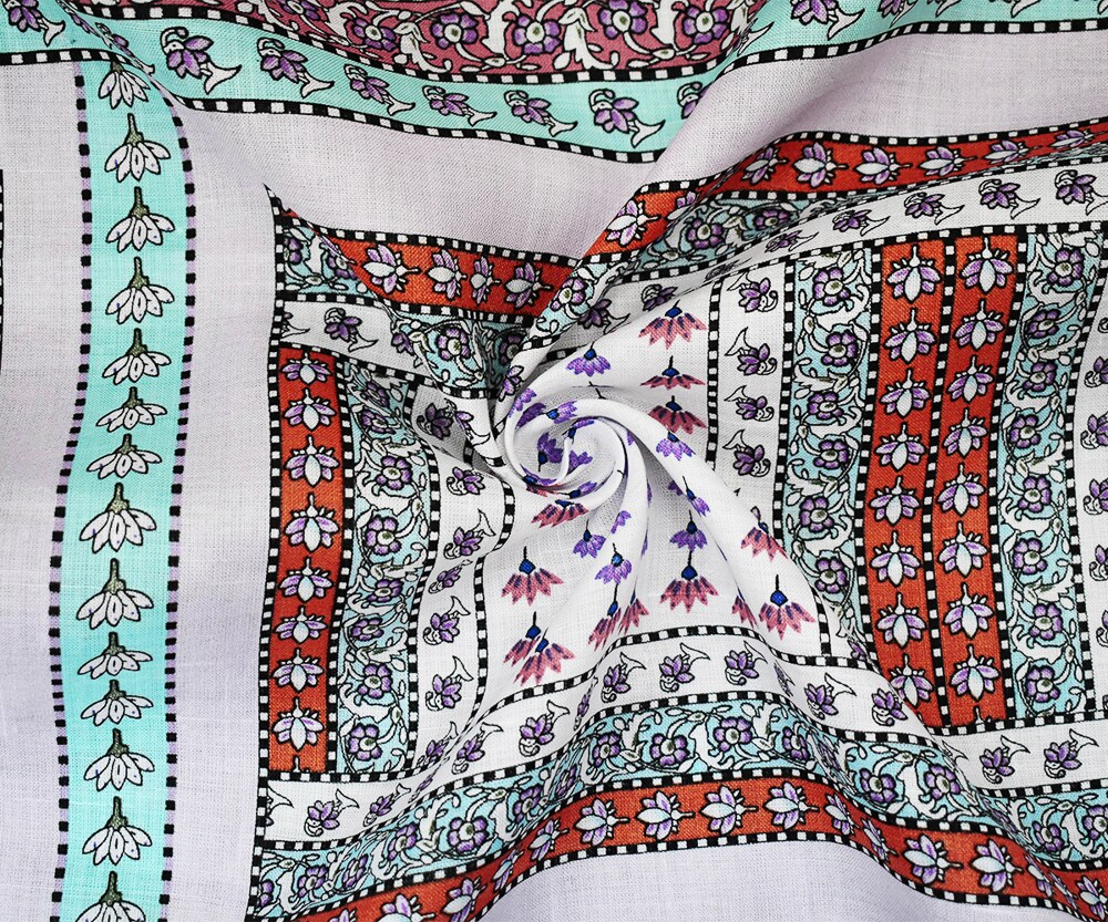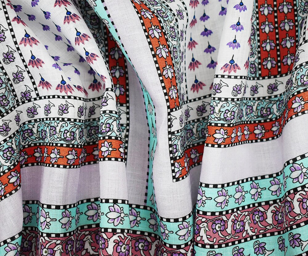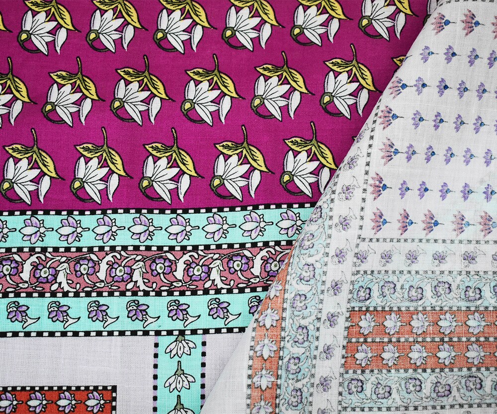 Fuchsia Pink-Multi Floral Bandana Pattern Printed Linen Woven Fabric By the Yard