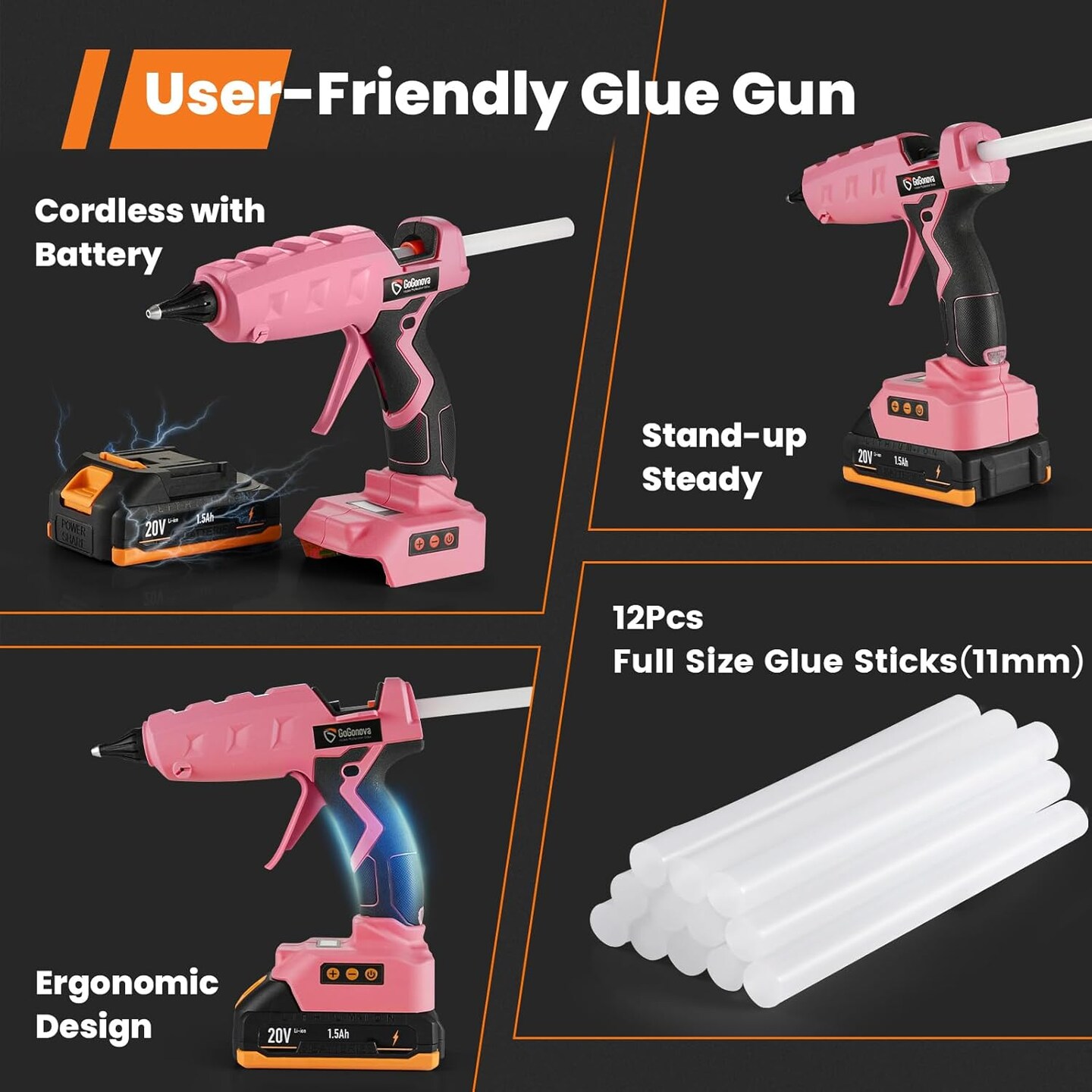 Full Size Cordless Glue Gun,20V Temp Adjust LCD Digital Display Fast Heating Accurate Dual Temp, Dripless Full Size Heavy Duty Hot Gun Kit with 12 Pcs Sticks (Battery Included)