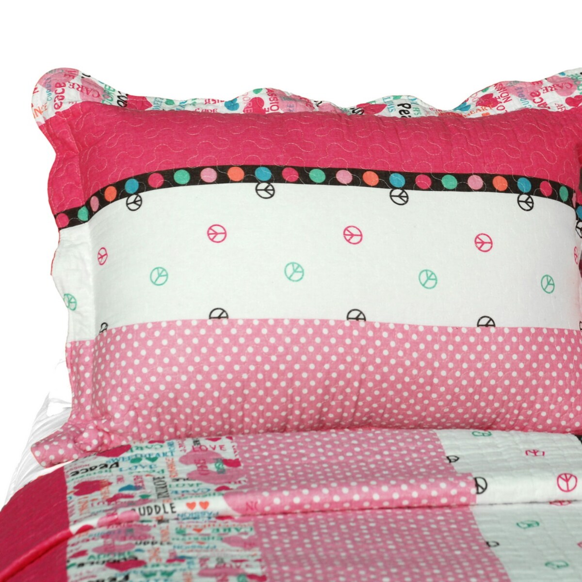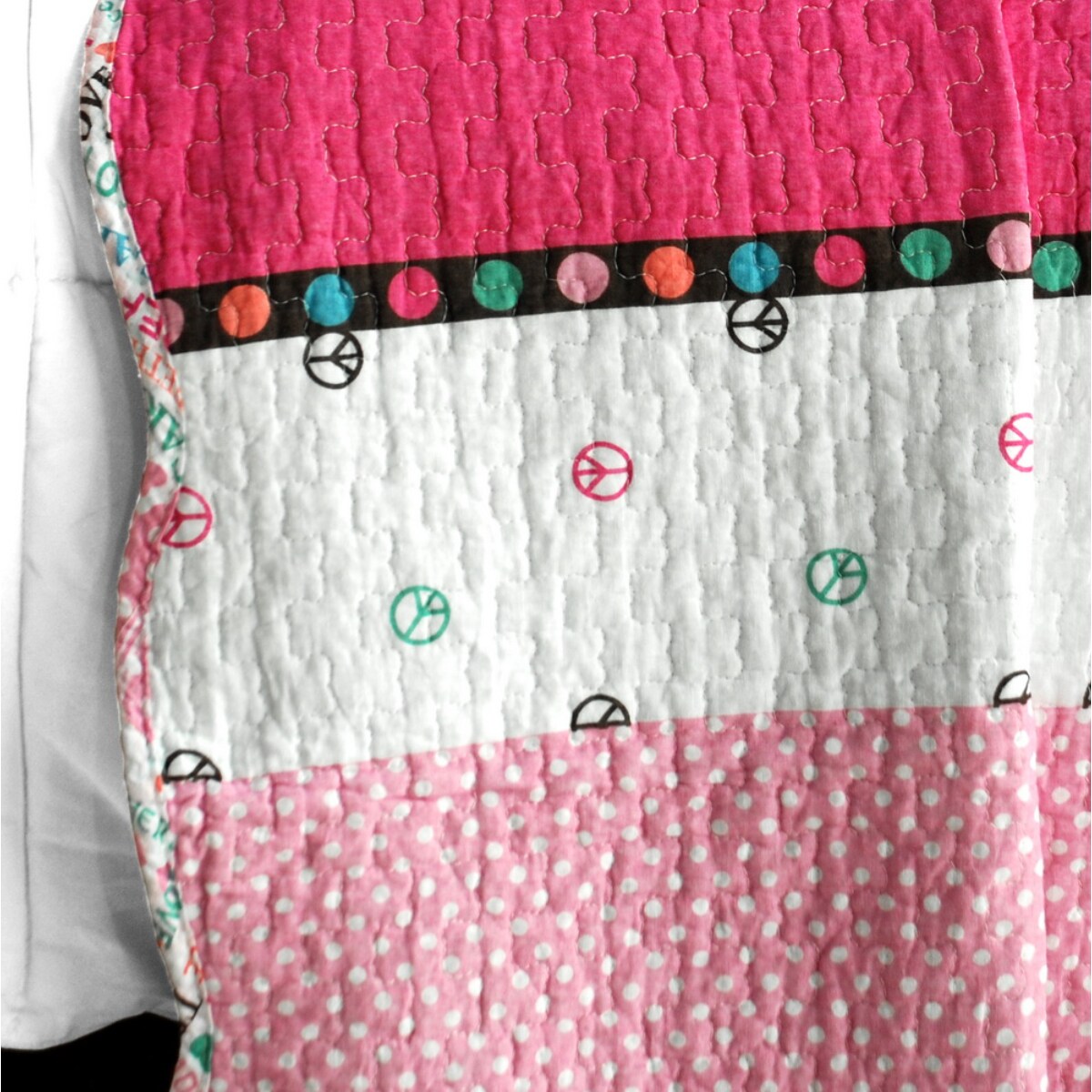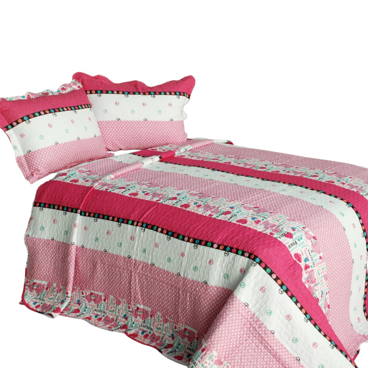 Full/Queen 3PC Striped Cotton Quilt Set Vermicelli Quilted