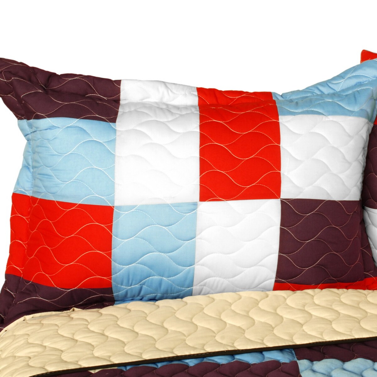 Full/Queen 3-Piece Reversible Patchwork Quilt Set Vermicelli Quilting, Handmade Geometric Design & Zipper Shams