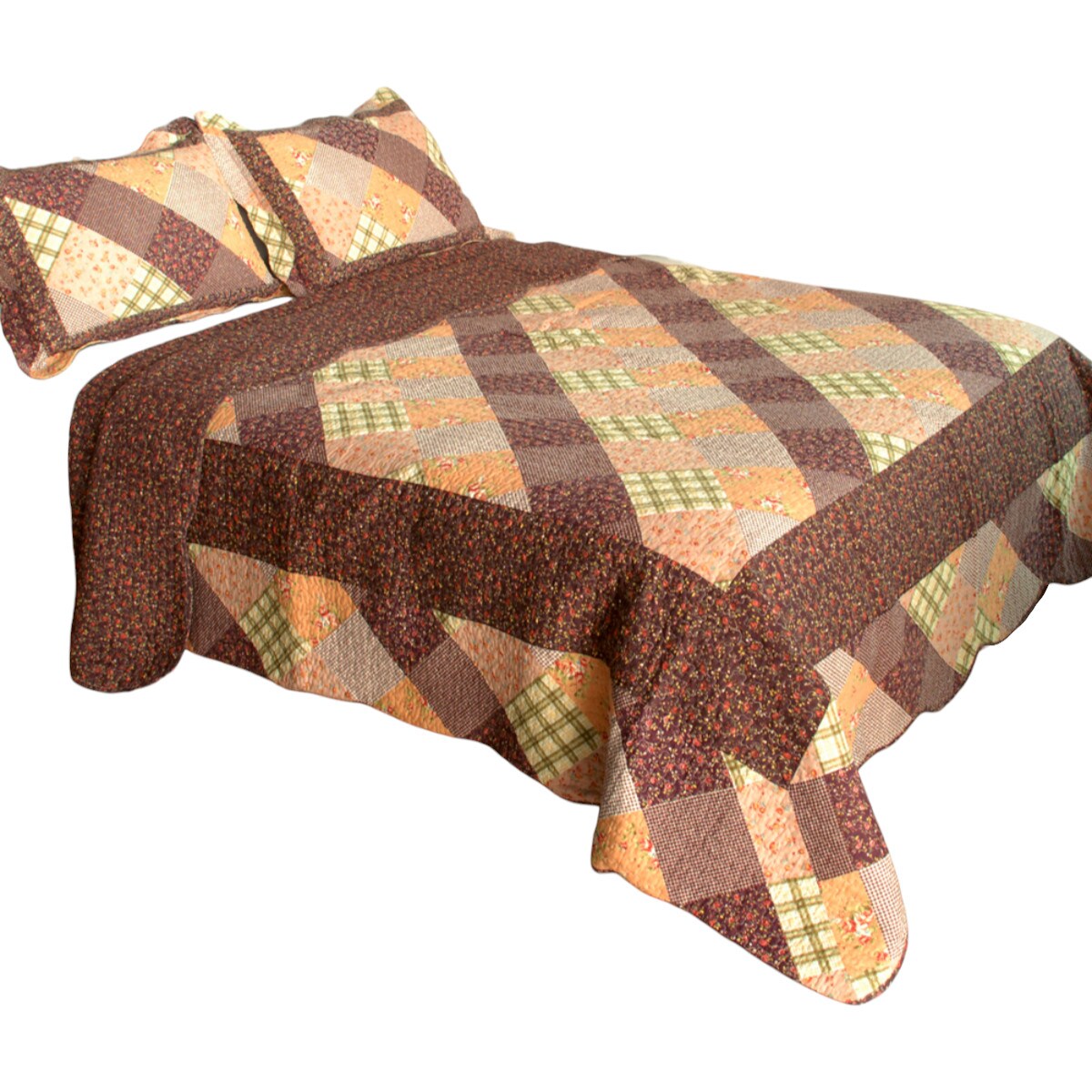 Full/Queen Brown Cotton Quilt Set 3-Piece Patchwork Quilted 90x98
