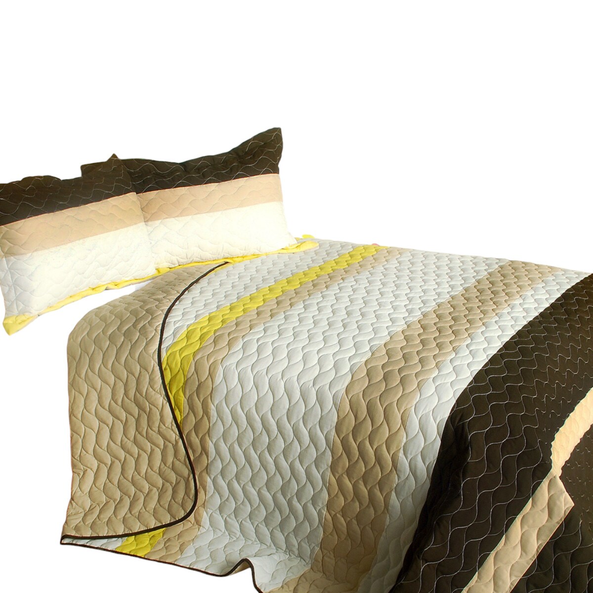 Full/Queen Handmade Quilt Set with 2 Shams, Vermicelli Quilted White/Brown