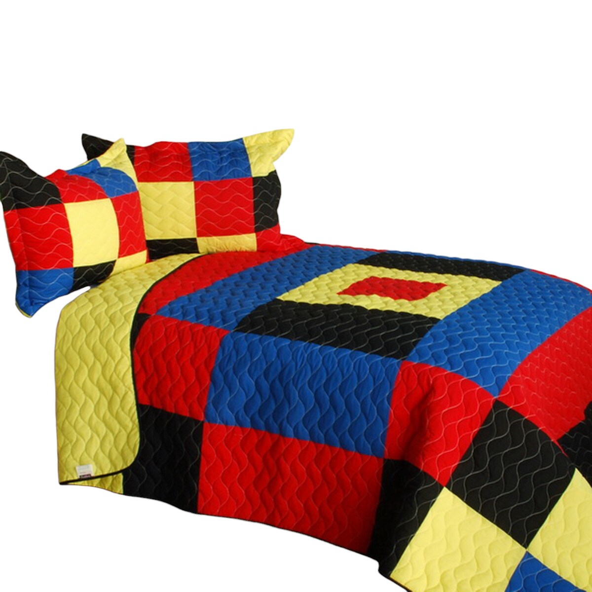 Full/Queen Patchwork Quilt Set, Handmade 3-Piece Vermicelli Quilted Bedding