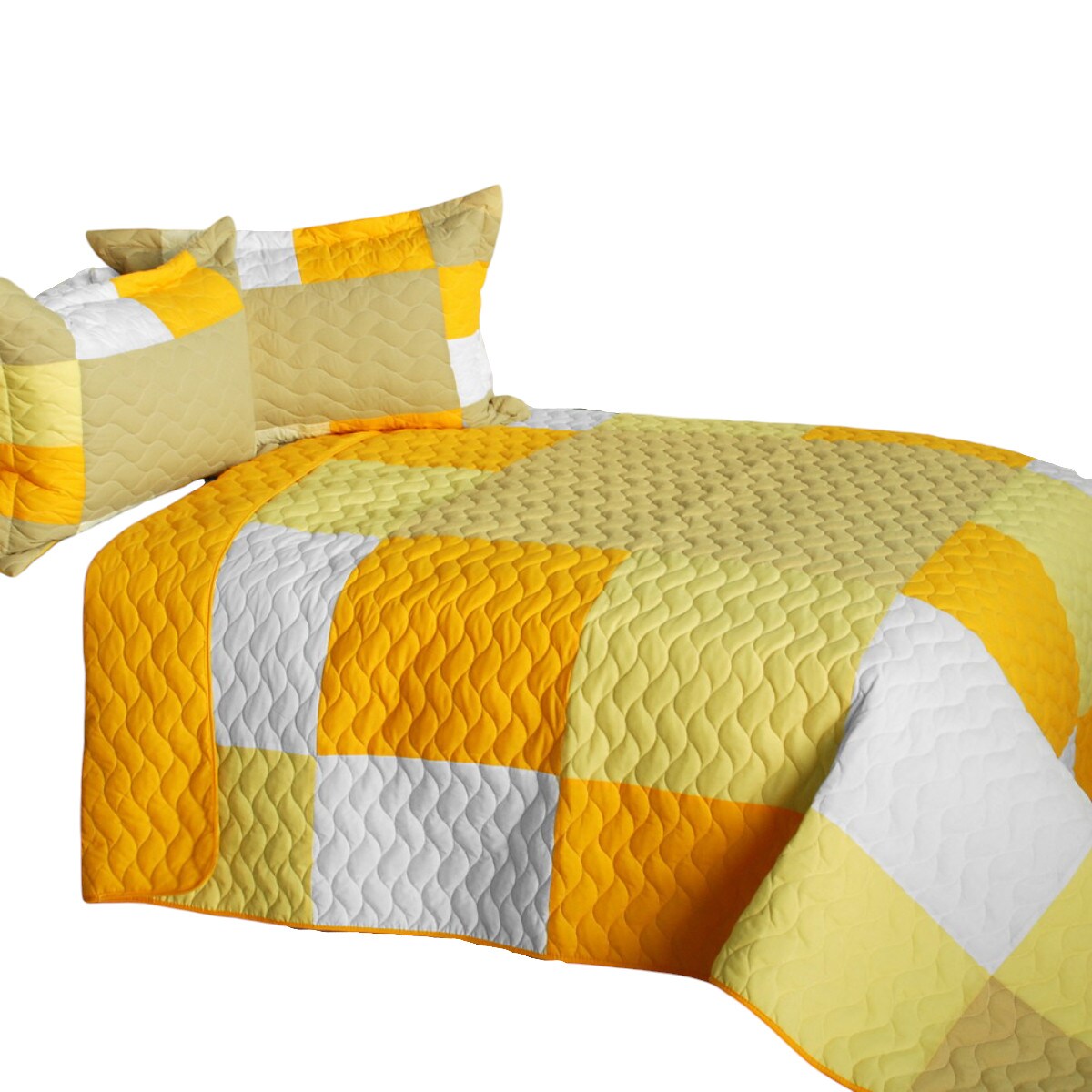 Full/Queen Plaid Quilt Set, TC Fabric with Vermicelli Texture