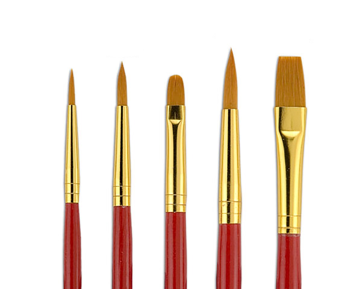Fundamentals Short Handled Brush Set - Economical Paint Brush Set No. 8 for Beginning Artists - Decorative Art Brushes Round #1, 3 & 5, 3/8" Shader, #4 Filbert - Paint Brushes Set of 5