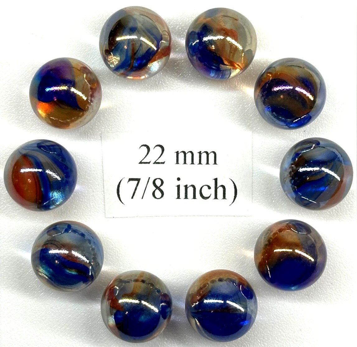 FUNFAIR Red/Blue Cats Eye Iridescent Glass Marbles 22mm (7/8 inch) SHOOTER (Lot of 10)