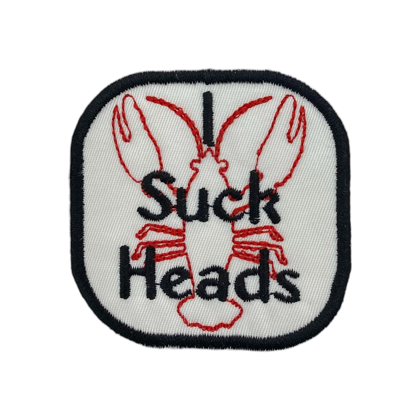 Funny Crawfish “I Suck Heads” Embroidered Iron-On Patch, Crawdad Boil Humor, 2.5 inch x 2.5 inch