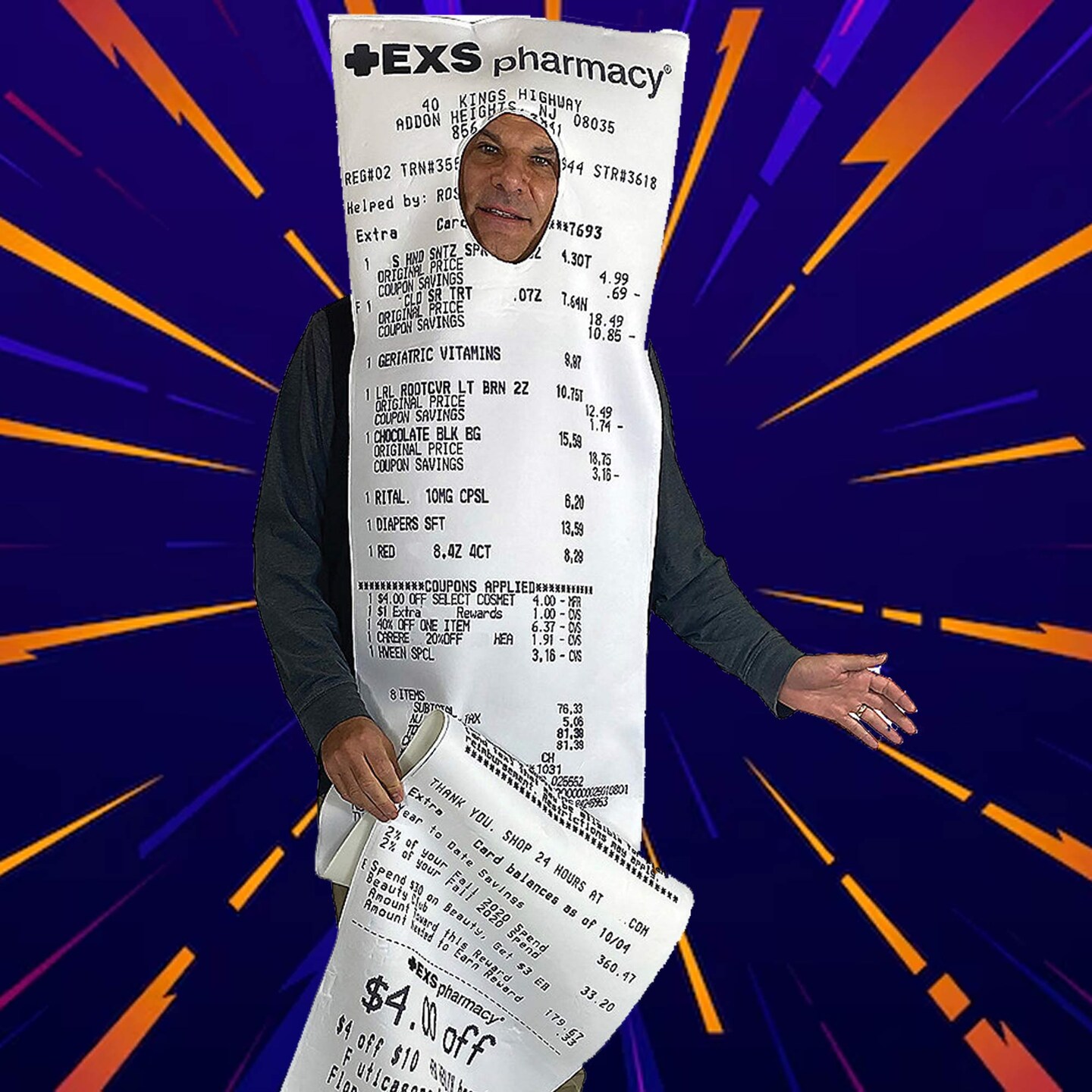 Funny Extra Long Pharmacy Receipt Adult Costume Tunic Halloween Outfit