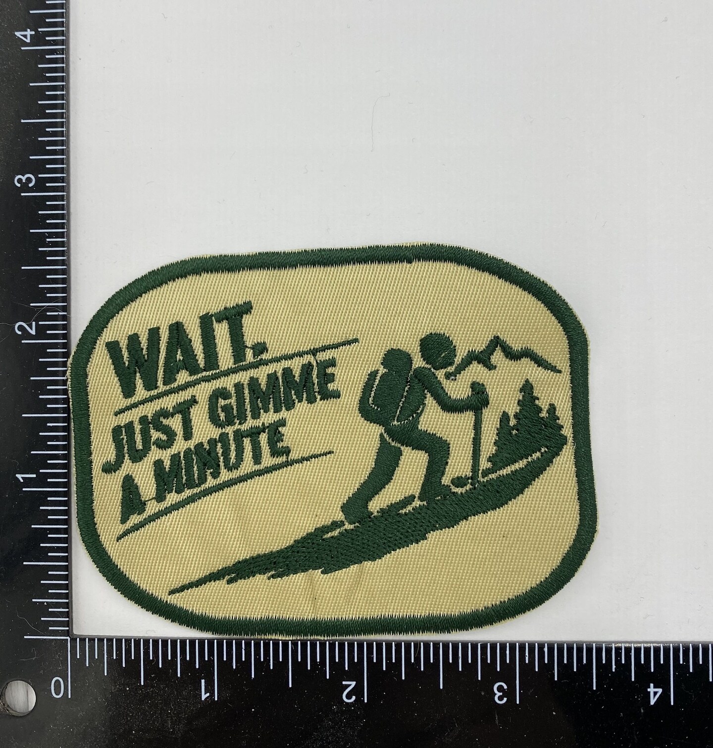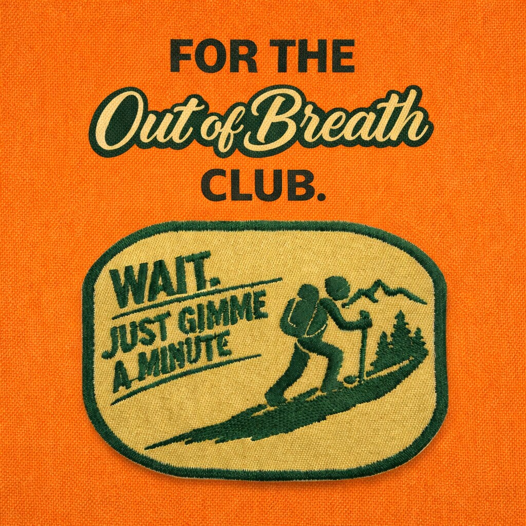 Funny Hiking Embroidered Outdoor Iron-On Patch, “Wait… Just Gimme a Minute”, Tired Hiker 2.5 inch x 3.5 inch
