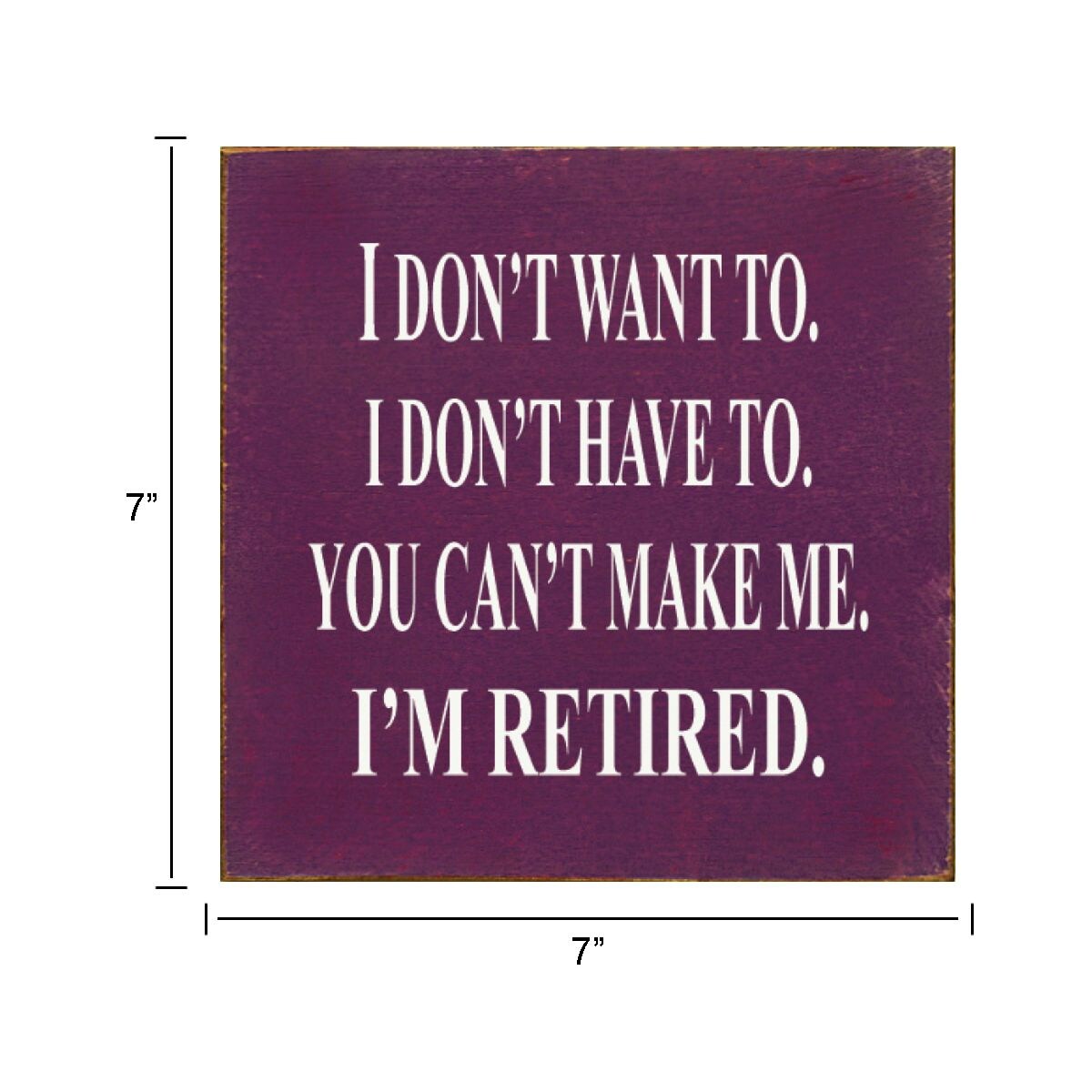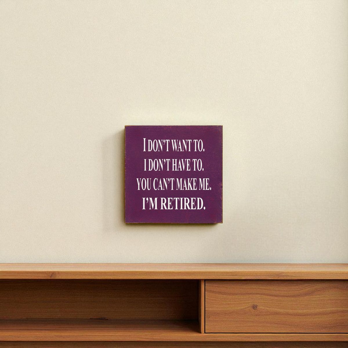 Funny Retired Quote Sign 'I Don't Want To, I Don't Have To, You Can't Make Me' Knotty Pine