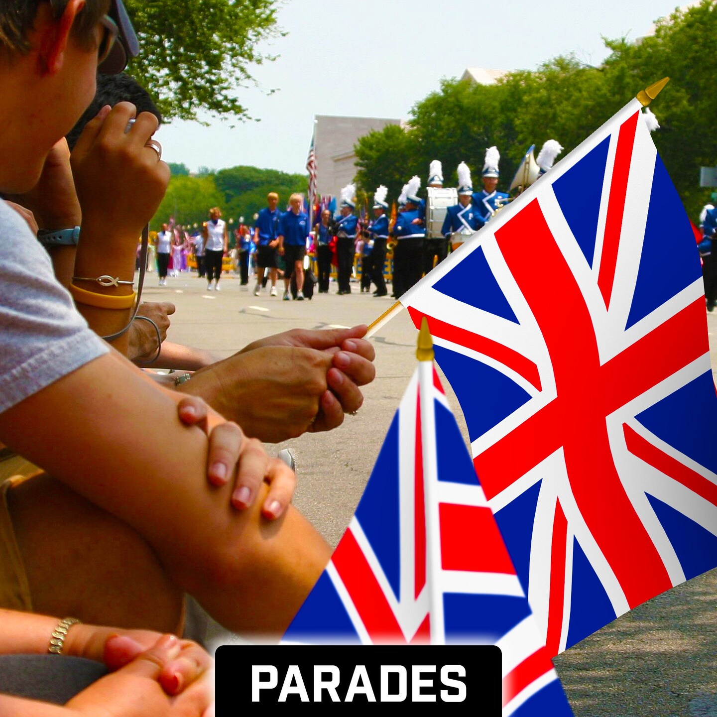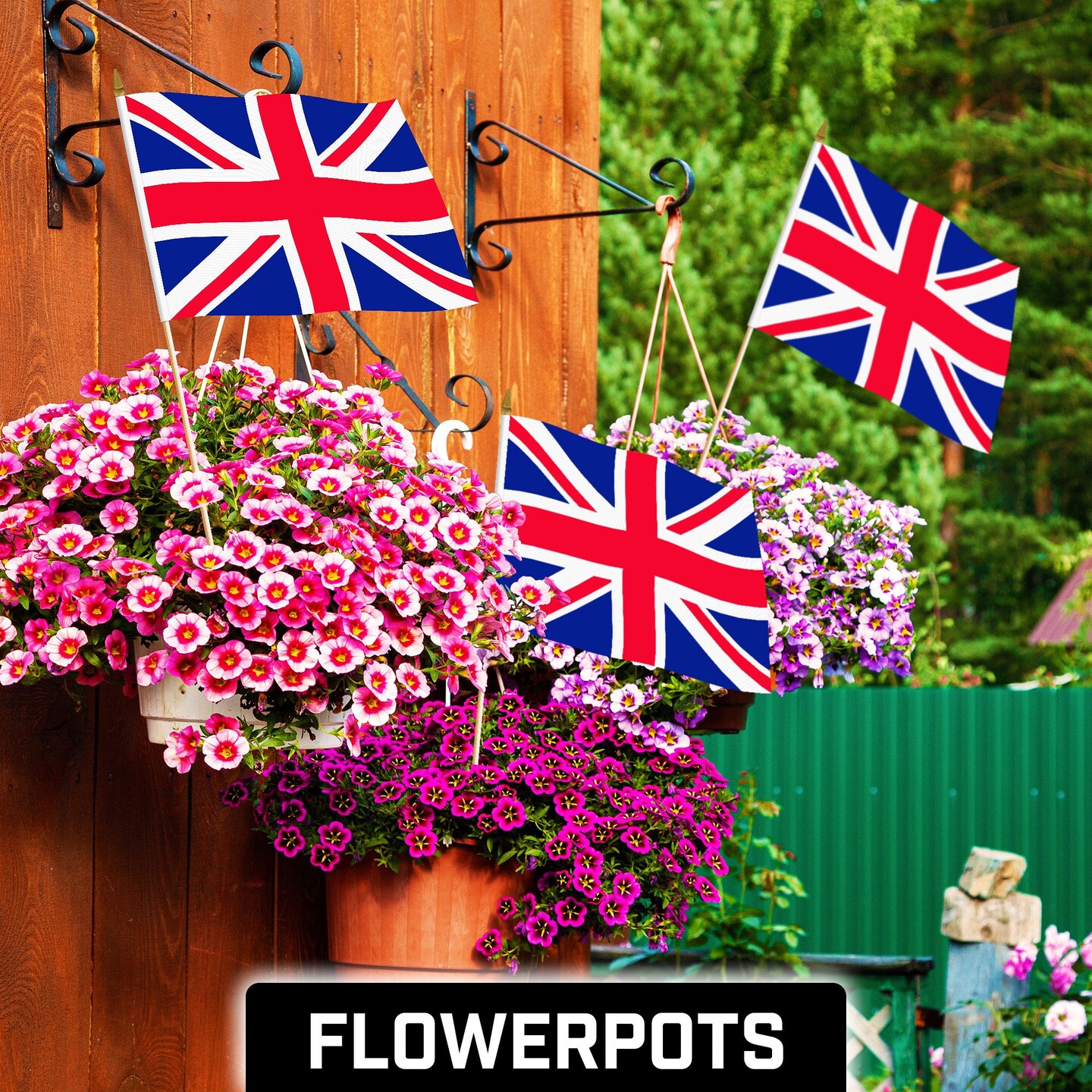 G128 12 Pack Handheld United Kingdom UK Stick Flags | 12x18 In | Printed 150D Polyester, Country Flag, Solid Wooden Stick, Spear Gold Tip