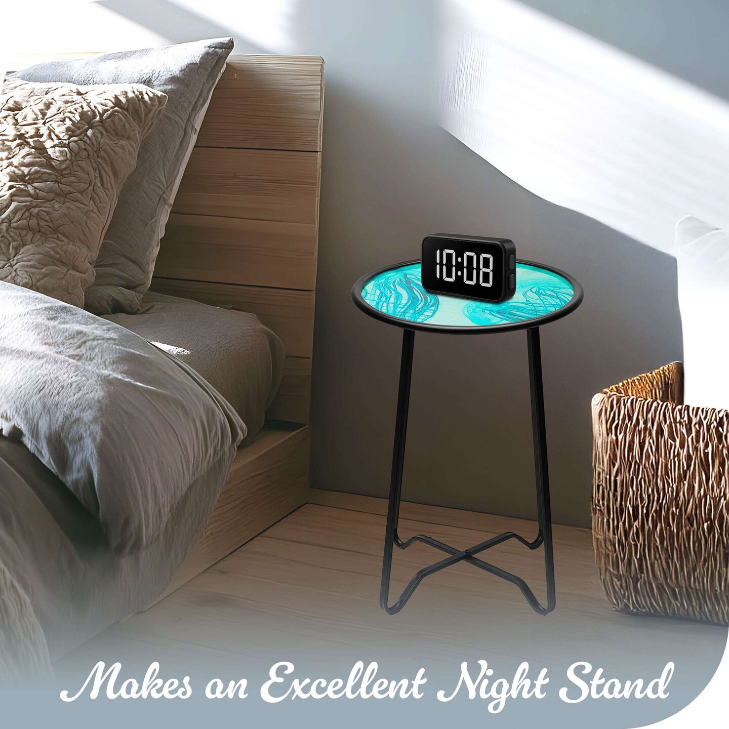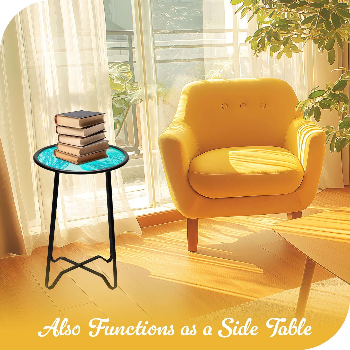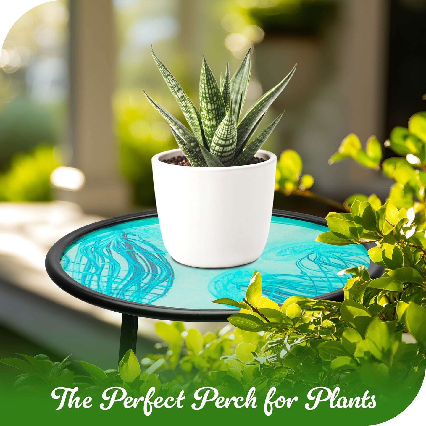 G128 14 in Round Glass Outdoor Side Table Jellyfish Ocean Pattern | Decorative Plant Stand, Small End Table for Garden Patio Porch Living Room