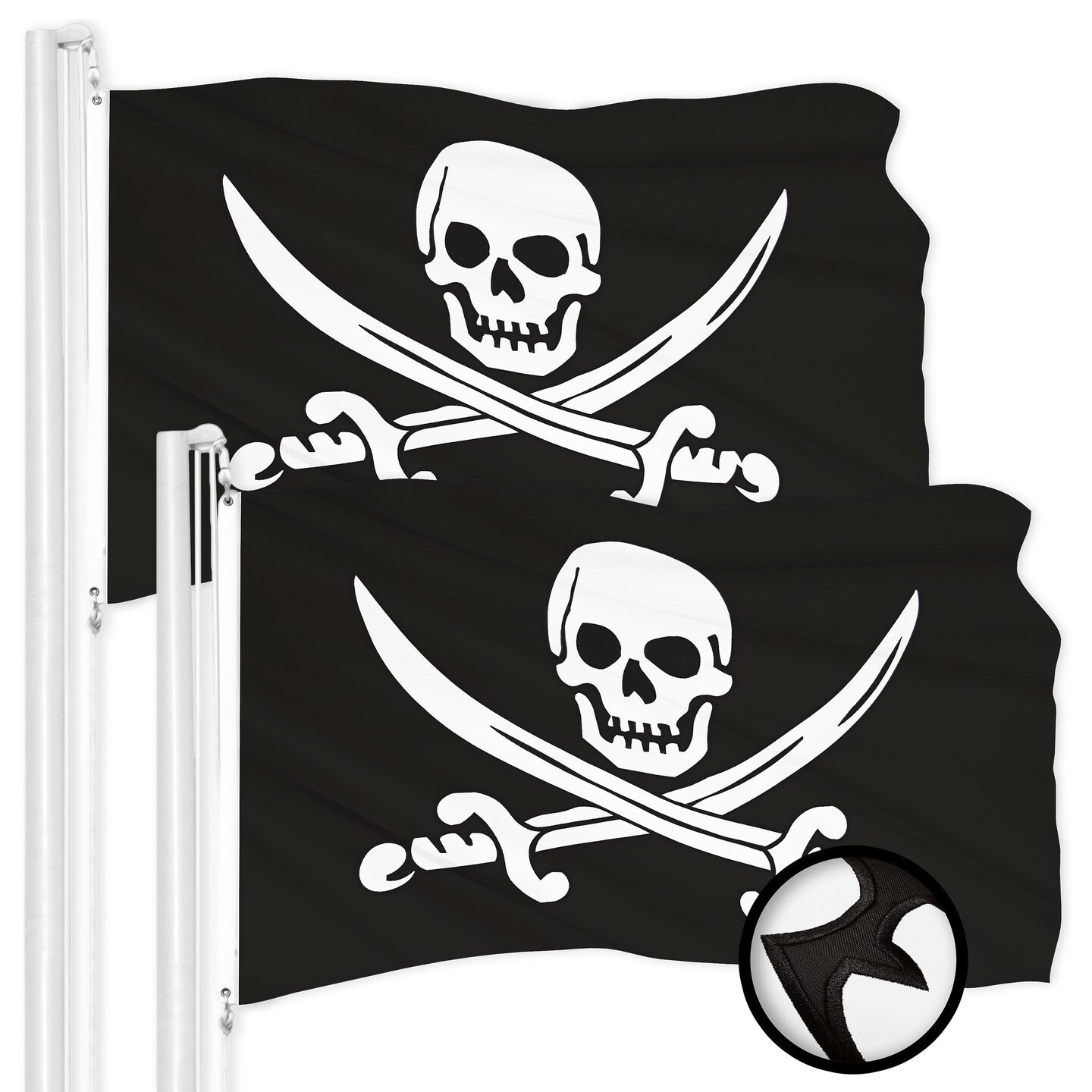 G128 2 Pack: Pirate Jolly Roger Swords Flag | 2x3 Ft | ToughWeave Series Embroidered 300D Polyester | Novelty Flag, Embroidered Design, Indoor/Outdoor, Brass Grommets