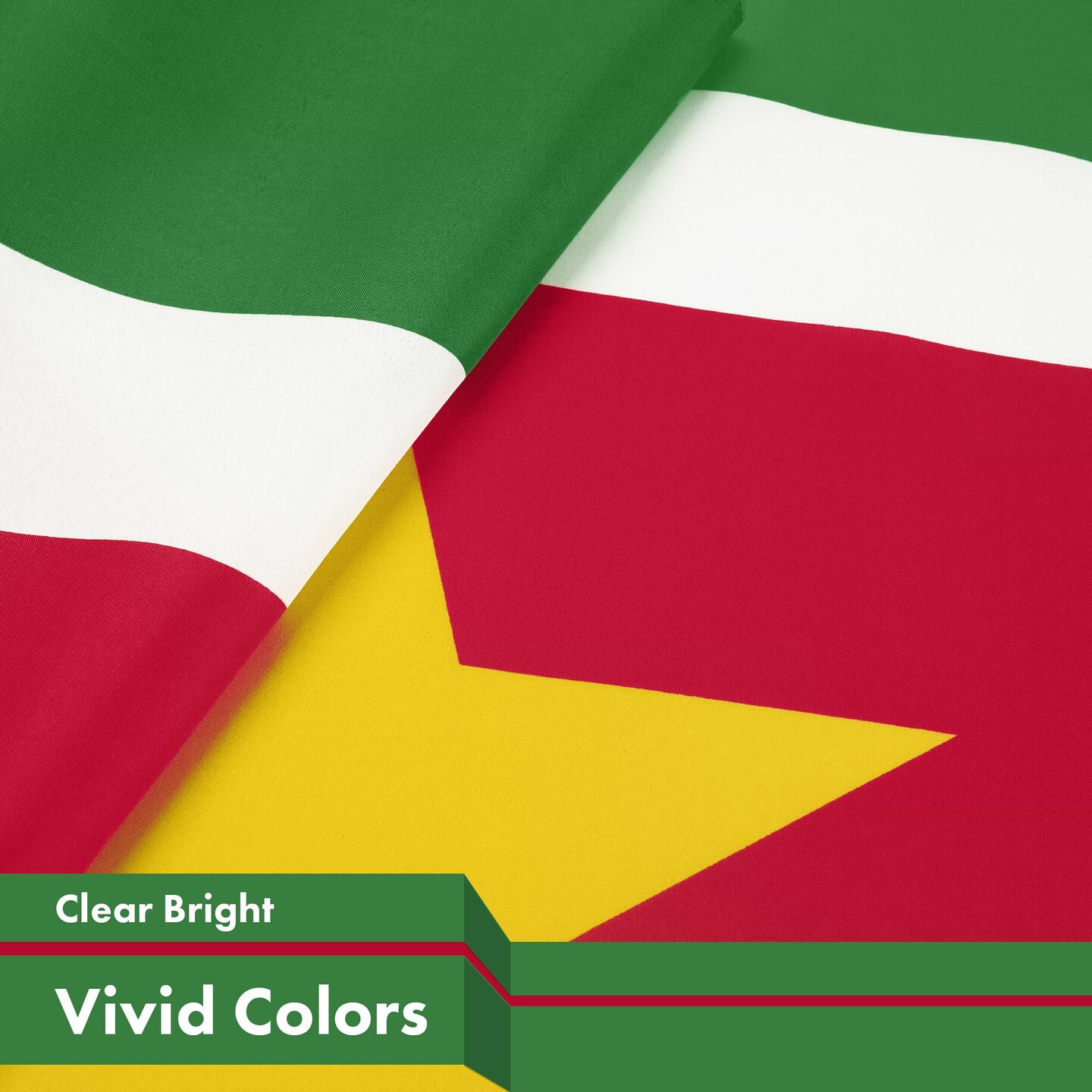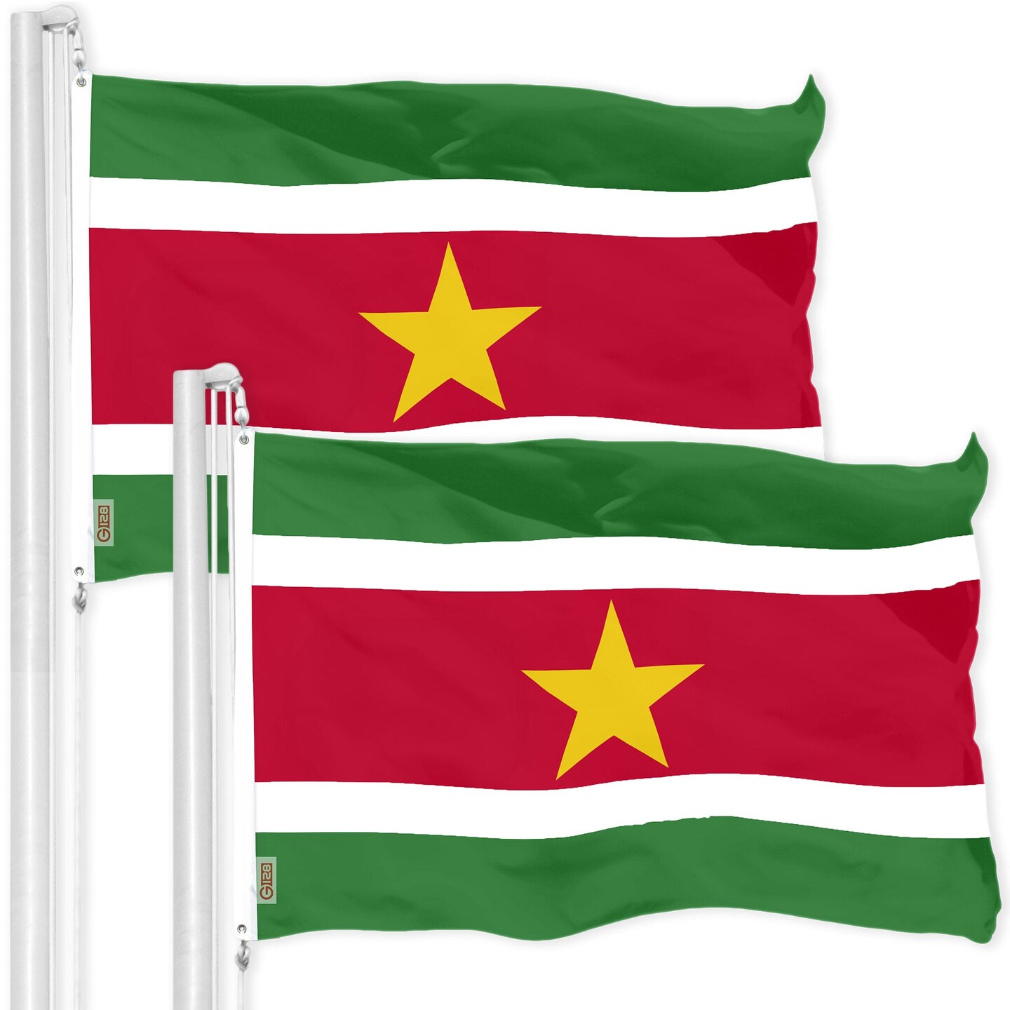 G128 2 Pack: Suriname Surinamese Flag | 3x5 Ft | LiteWeave Pro Series Printed 150D Polyester | Country Flag, Indoor/Outdoor, Vibrant Colors, Brass Grommets, Thicker and More Durable Than 100D 75D Poly