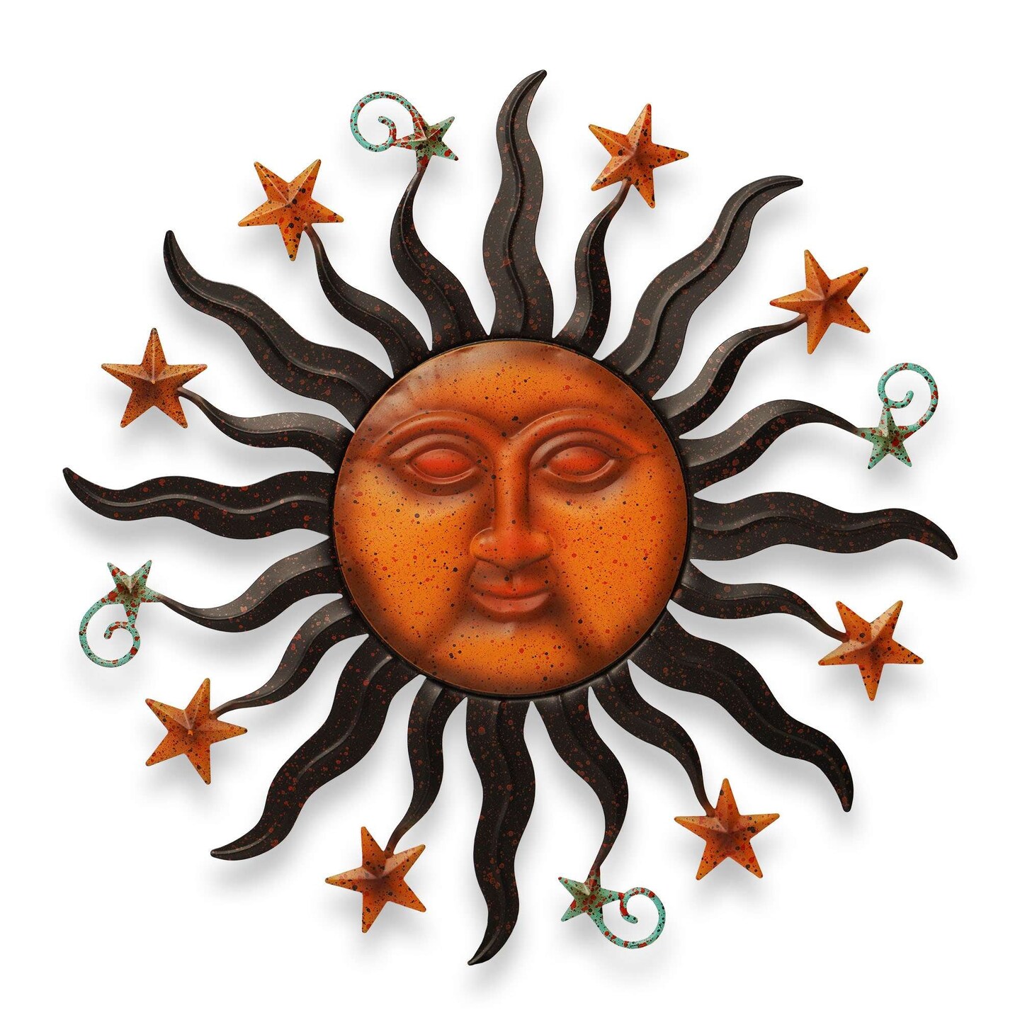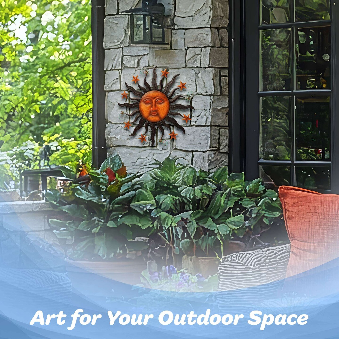 G128 24 in Sun Face Metal Wall Art Decor | Cute Sun Face Metal Wall Sculpture Statues Wall Art Hanging Decoration for Indoor Outdoor, Garden, Home, Farmhouse, Fence Balcony Patio and Bedroom
