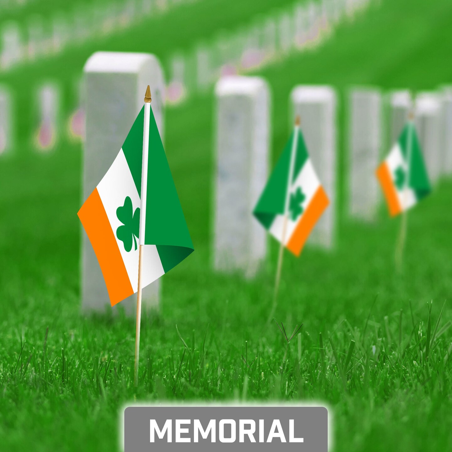 G128 24 Pack Handheld Ireland Shamrock Irish Stick Flags | 8x12 In | Printed 150D Polyester, Country Flag, Solid Wooden Stick, Spear Gold Tip