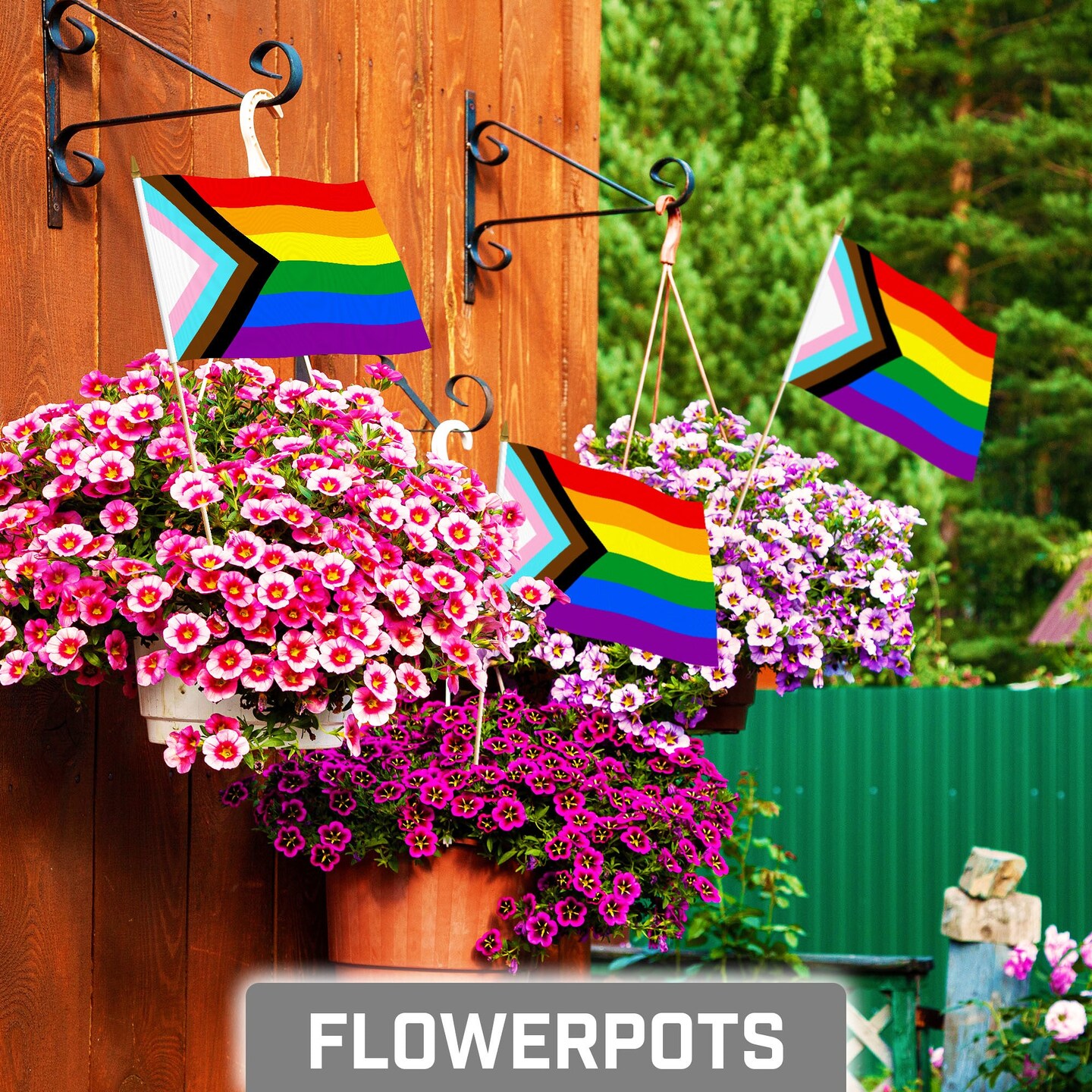 G128 24 Pack Handheld LGBT Progress Rainbow Pride Stick Flags | 8x12 In | Printed 150D Polyester, Social Flag, Solid Wooden Stick, Spear Gold Tip