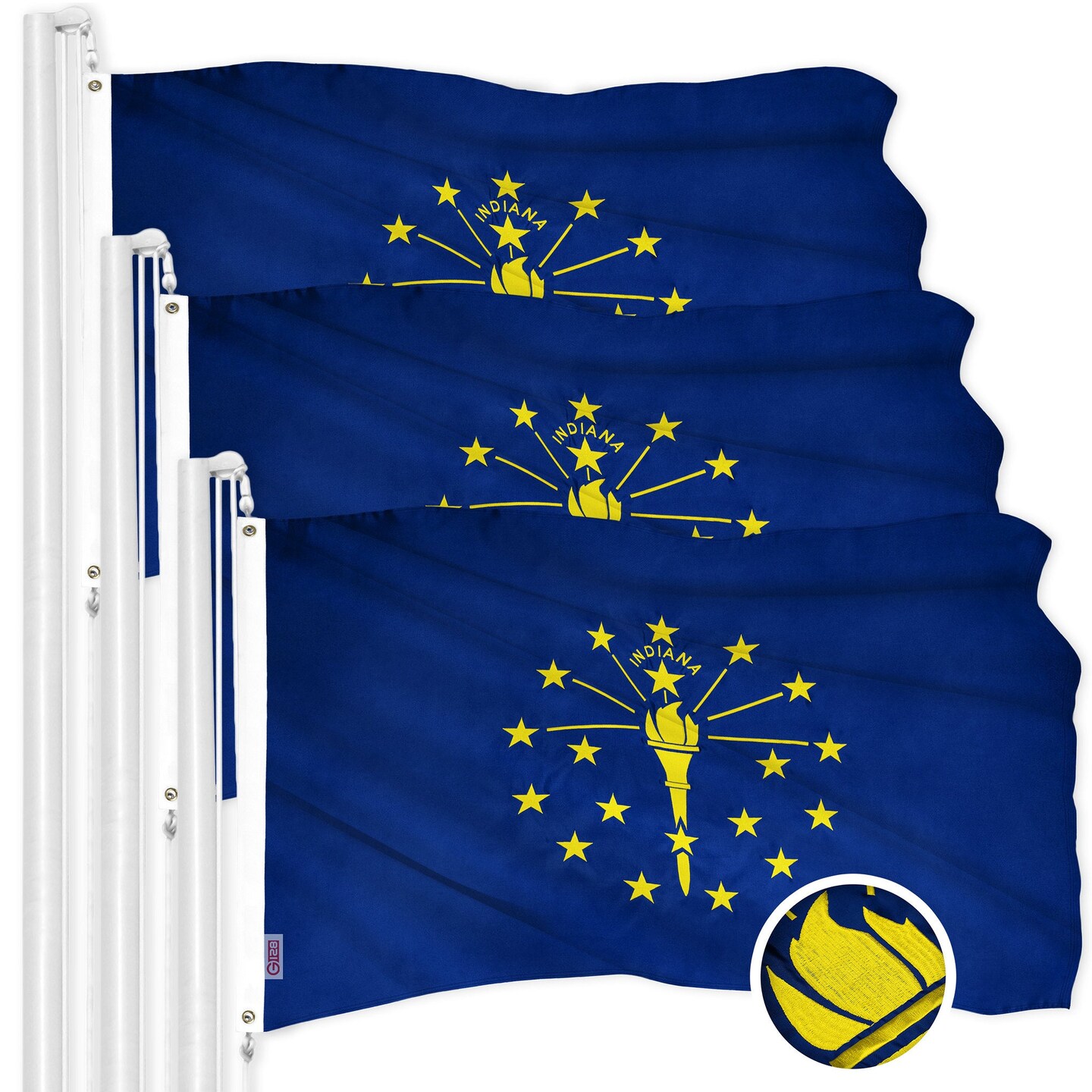 G128 3 Pack: Indiana IN | 4x6 Ft | ToughWeave Series Embroidered 300D Polyester | Embroidered Design, Indoor/Outdoor, Brass Grommets