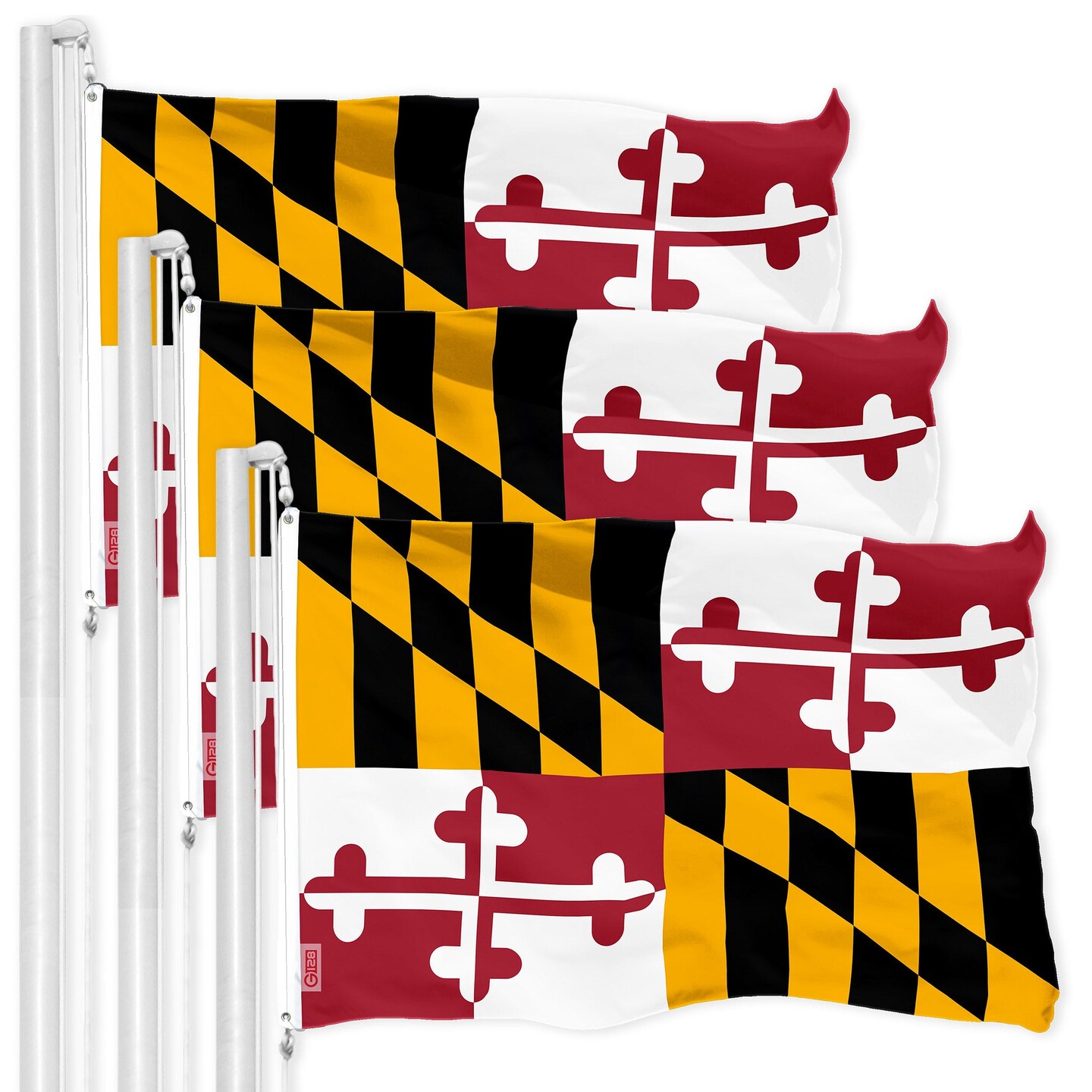 G128 3 Pack: Maryland MD | 3x5 Ft | LiteWeave Pro Series Printed 150D Polyester | Indoor/Outdoor, Vibrant Colors, Brass Grommets, Thicker and More Durable Than 100D 75D Polyester