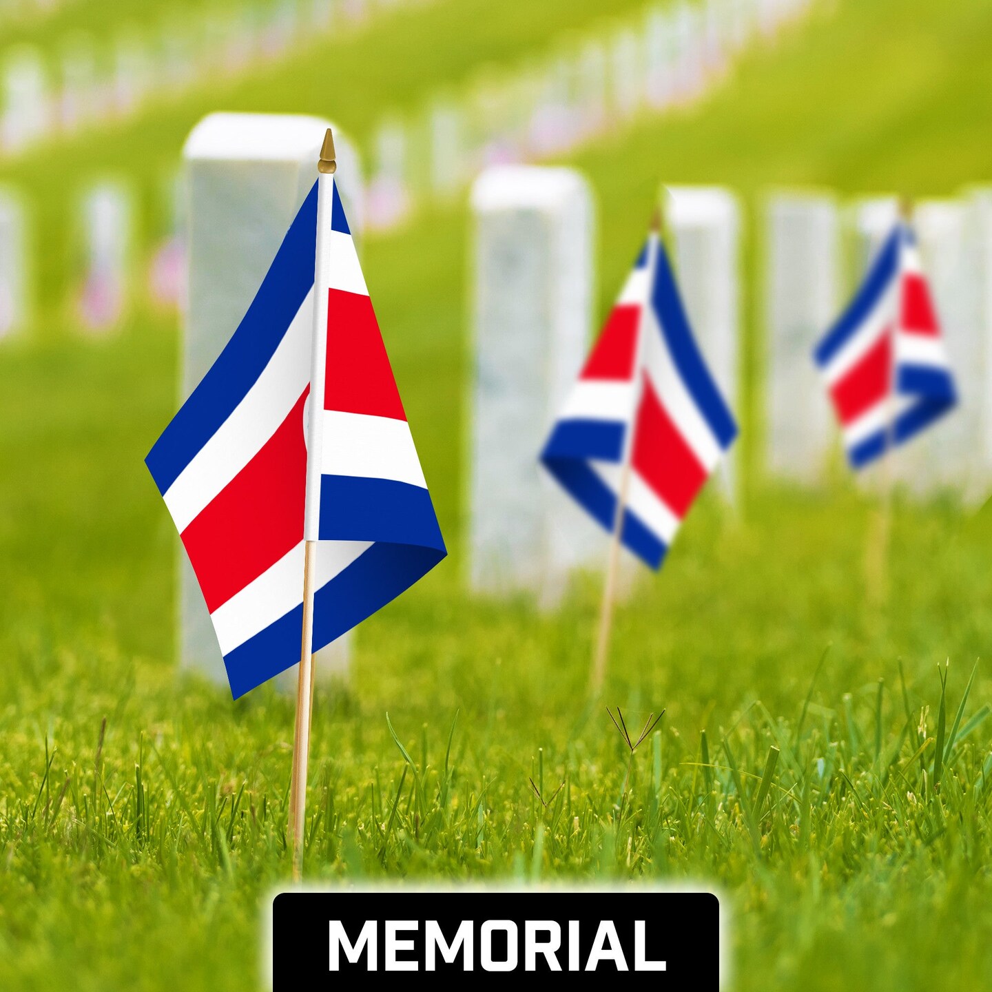 G128 30 Pack Handheld Costa Rica Costa Rican Stick Flags | 12x18 In | Printed 150D Polyester, Country Flag, Solid Wooden Stick, Spear Gold Tip