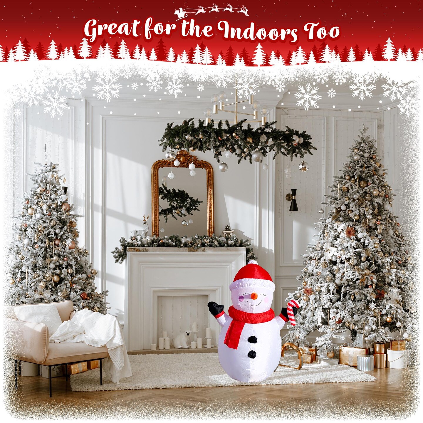 G128 3.5 ft H Snowman with Candy Canes Christmas Inflatable Decor with LED Lights, Christmas Outdoor Holiday Yard Decoration, Fast Inflate, Weather-Resistant, Outdoor Use