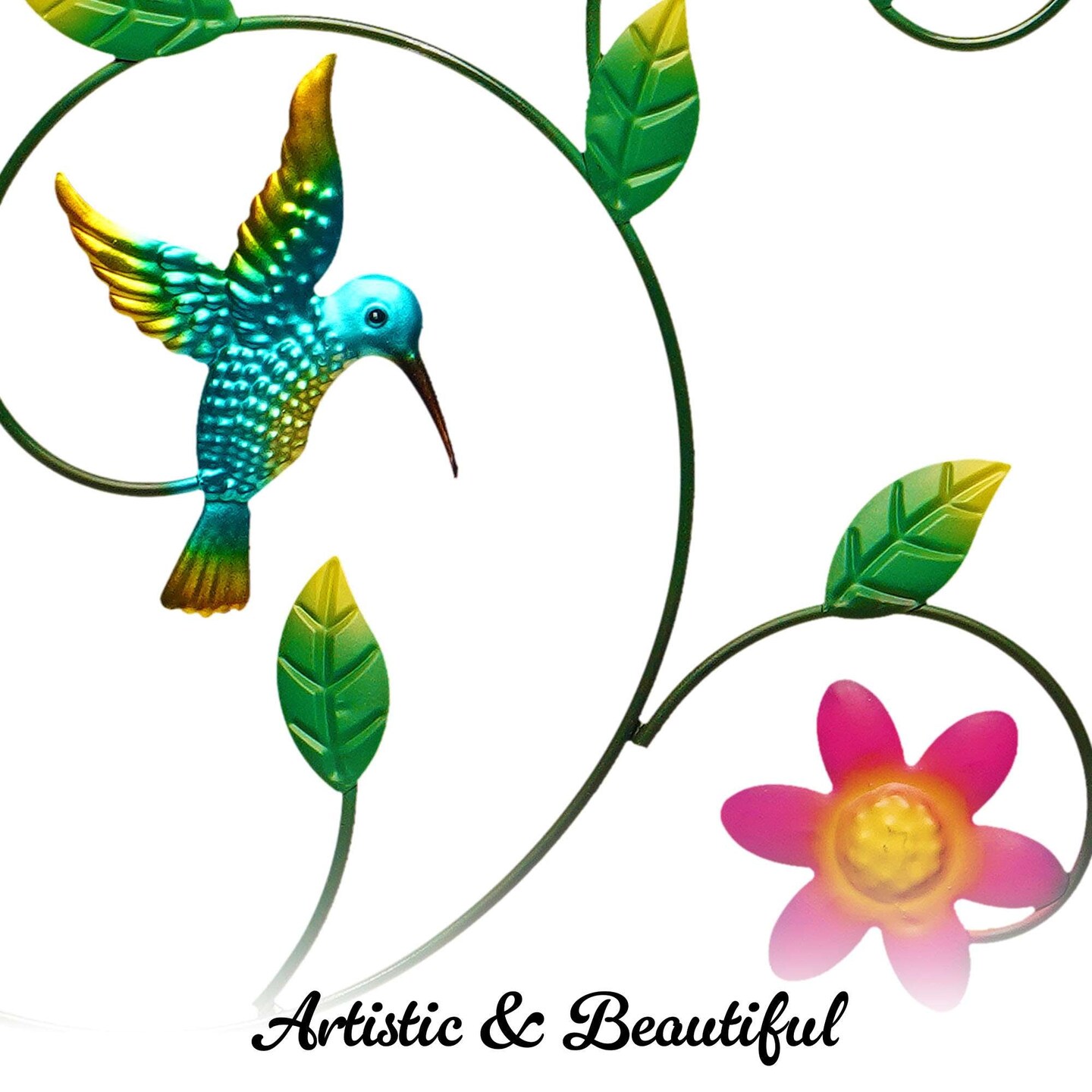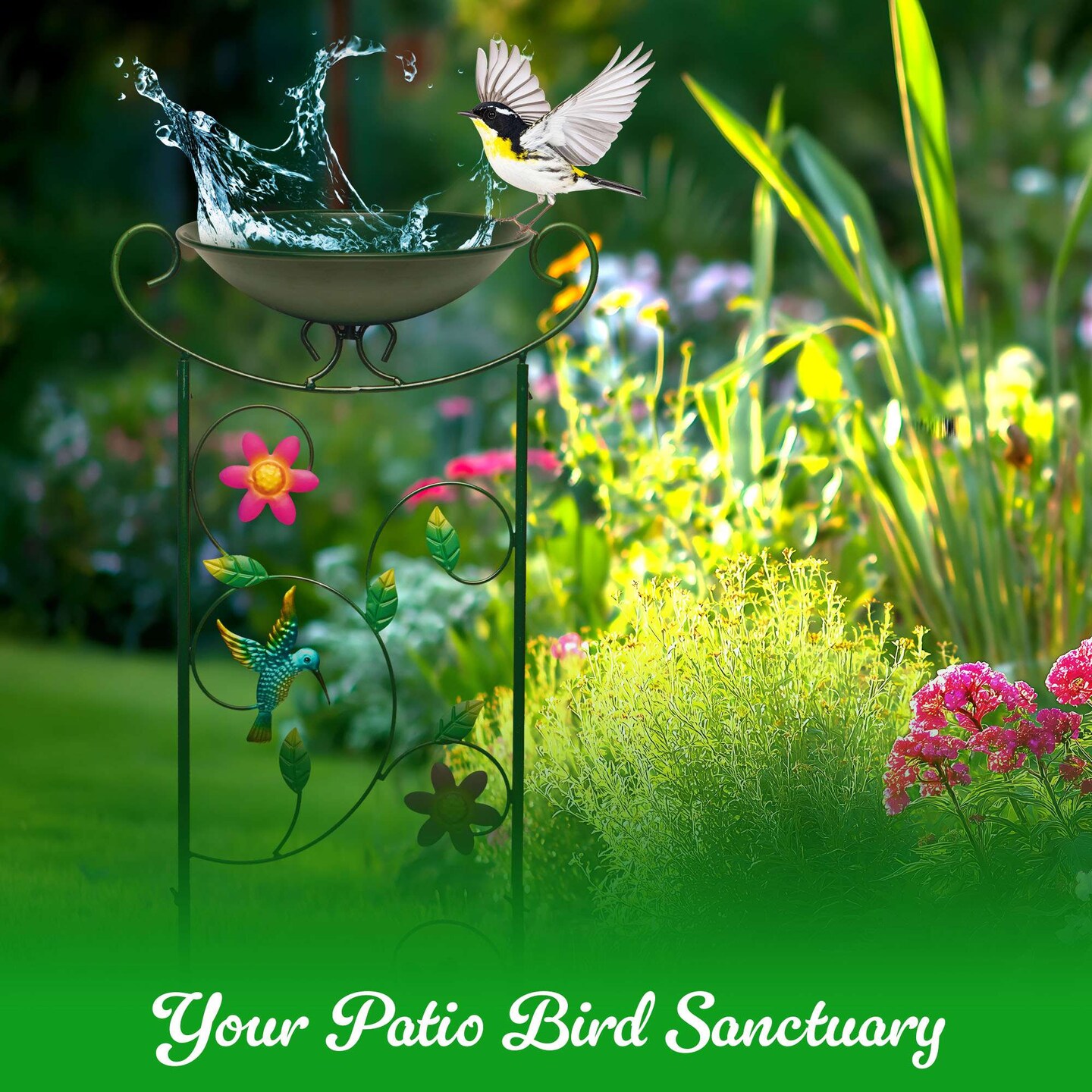 G128 35 Inch Antique Garden Iron Bird Bath with Trellis, Decorative Hummingbirds, Detachable Bowl, Metal Potted Plant Support, Elegant Outdoor Garden Bird Feeder