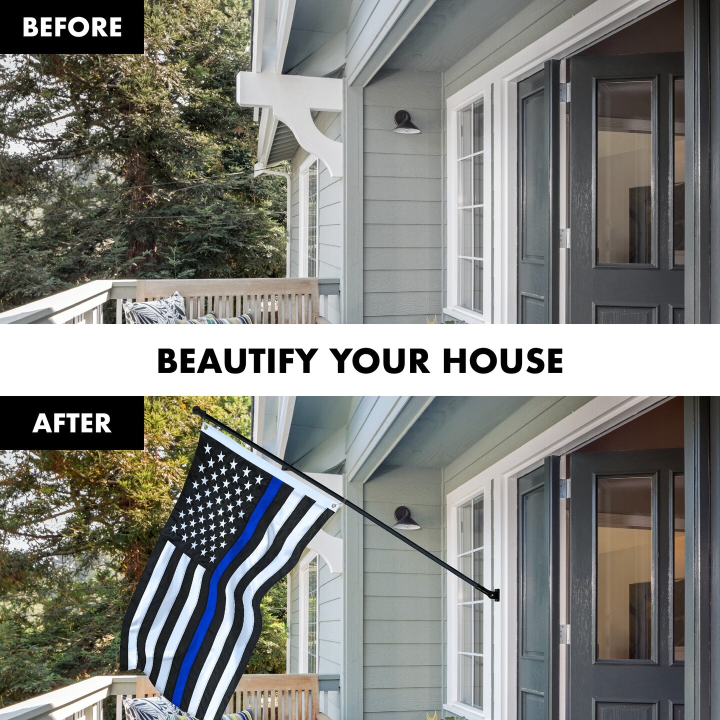 G128 - 5 Feet Tangle Free Spinning Flagpole (Black) Thin Blue Line Flag Brass Grommets Embroidered 2x3 ft (Flag Included) Aluminum Flag Pole