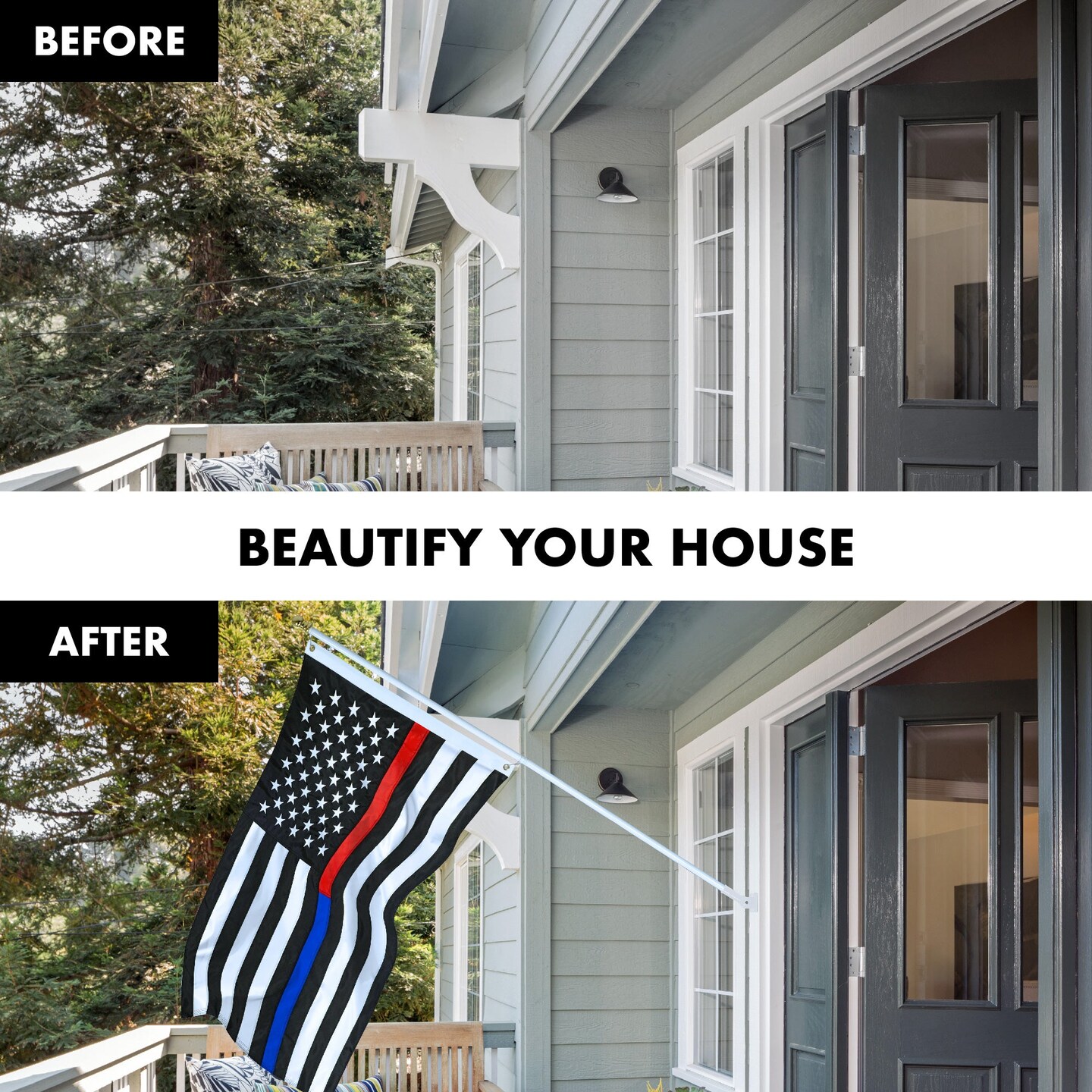 G128 - 5 Feet Tangle Free Spinning Flagpole (White) Thin Blue&Red Line Flag Brass Grommets Embroidered 2x3 ft (Flag Included) Aluminum Flag Pole