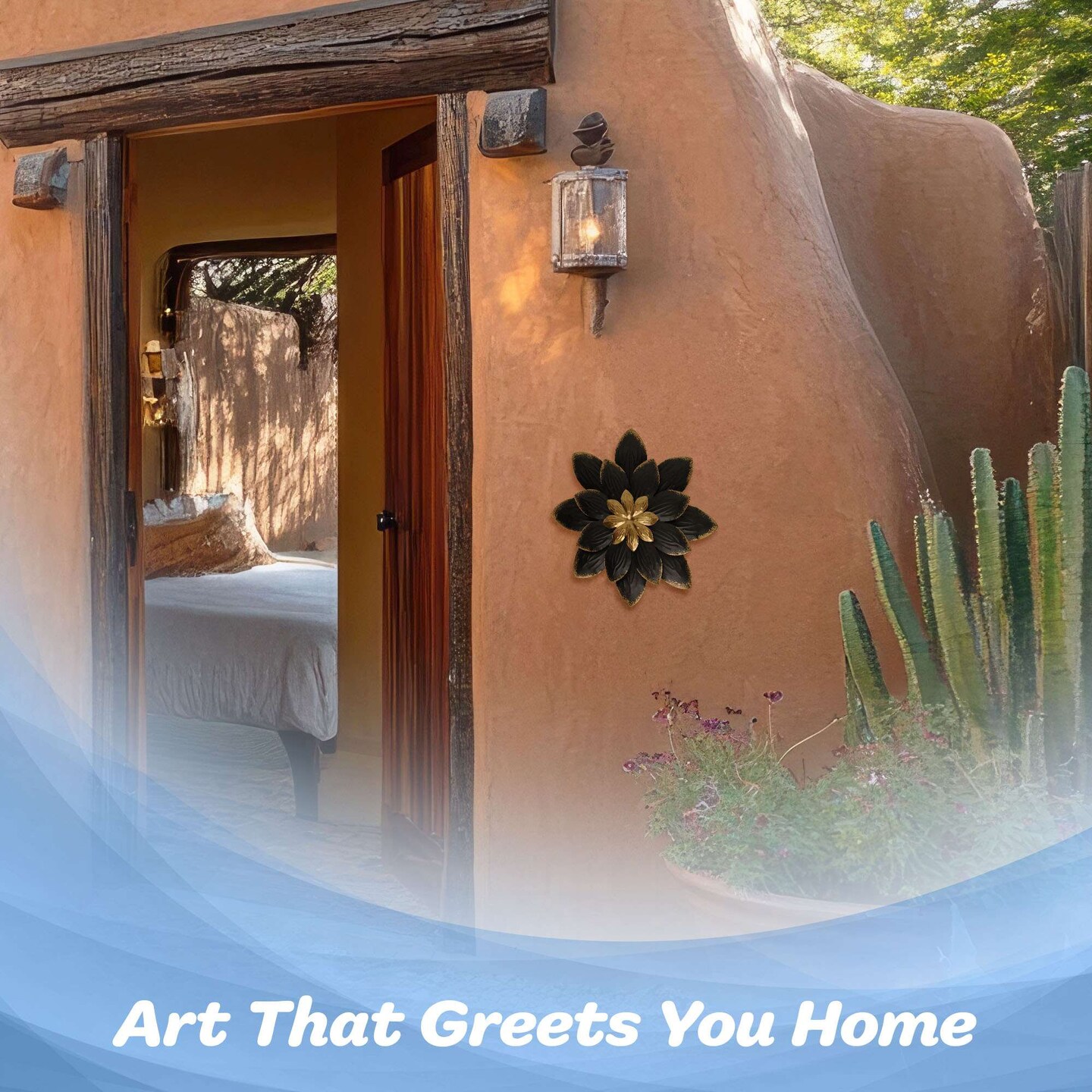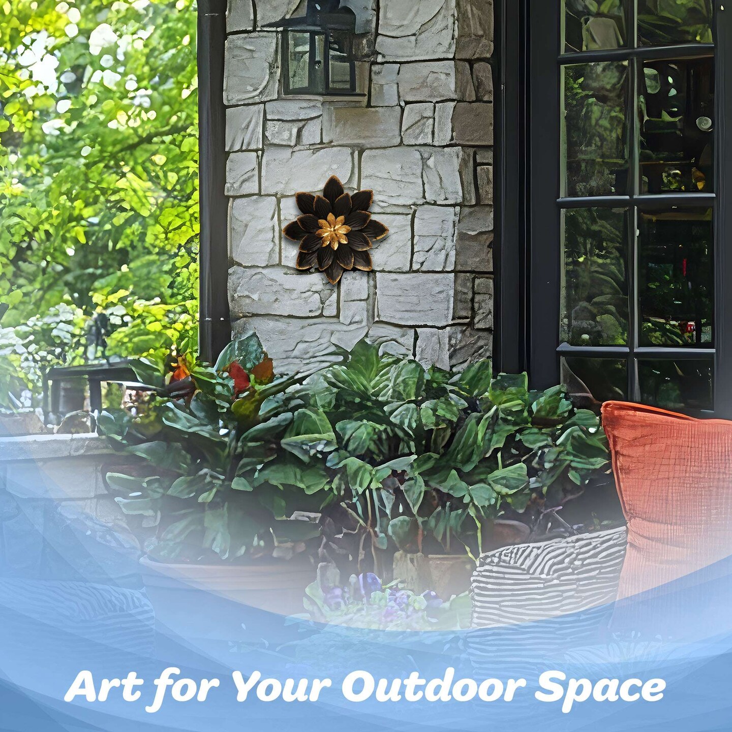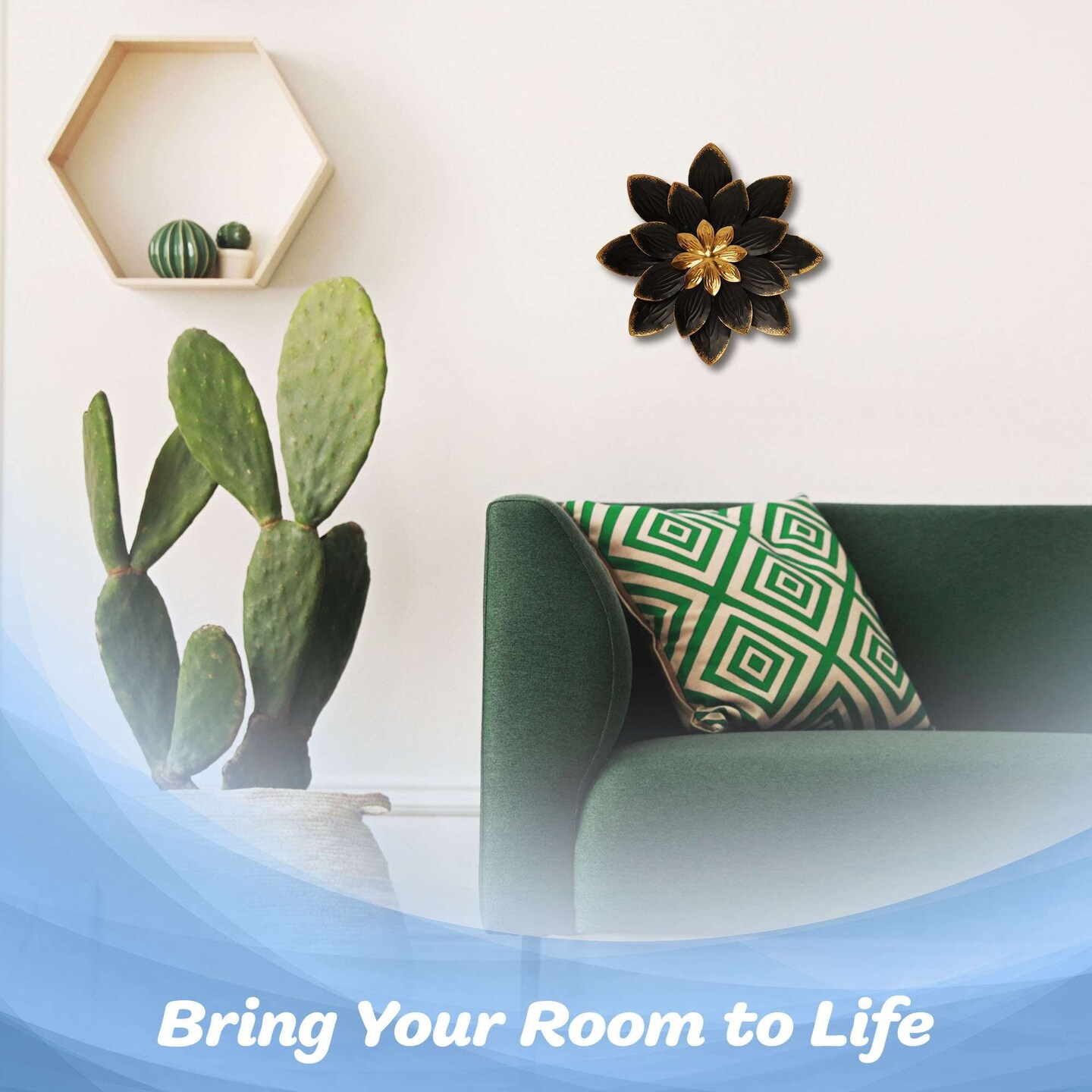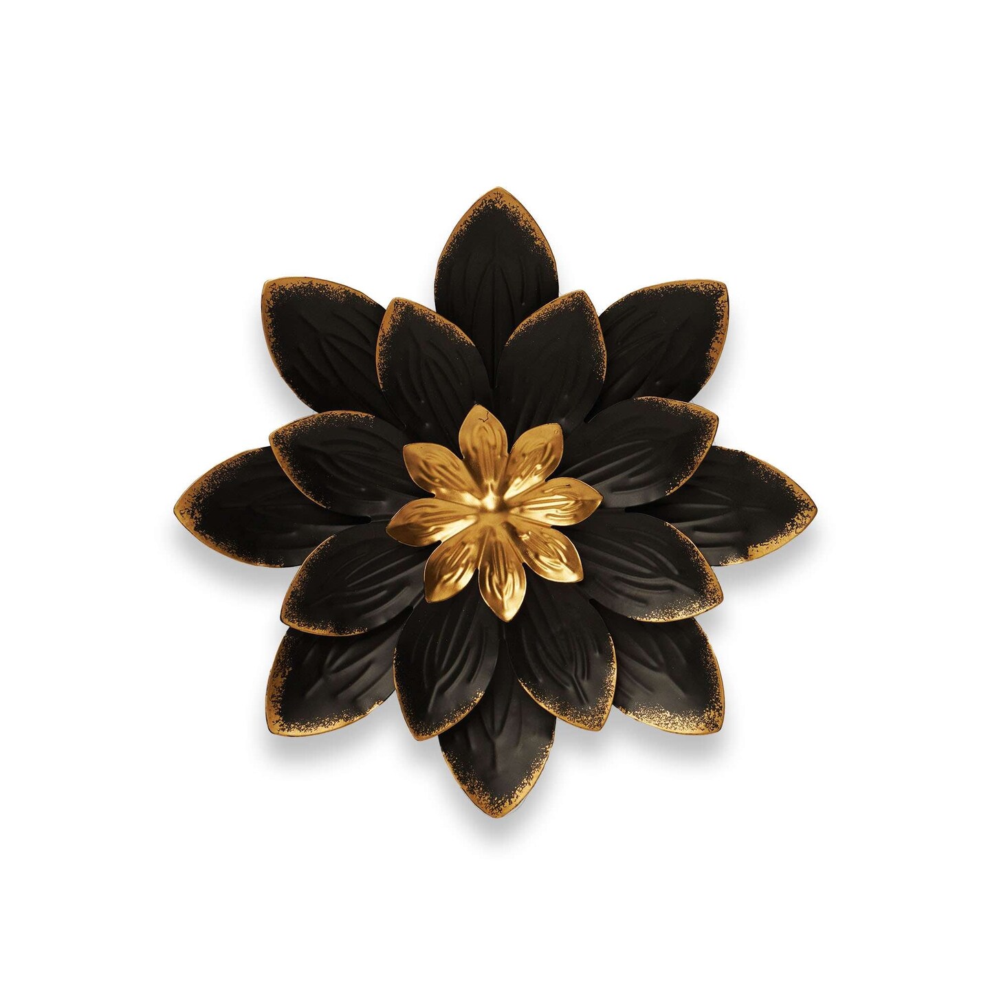 G128 9 IN Black and Gold Flower Metal Wall Art Decor | Elegant Floral Wall Hanging Decor for Indoor Living Room Bedroom Office Outdoor Garden Patio Yard