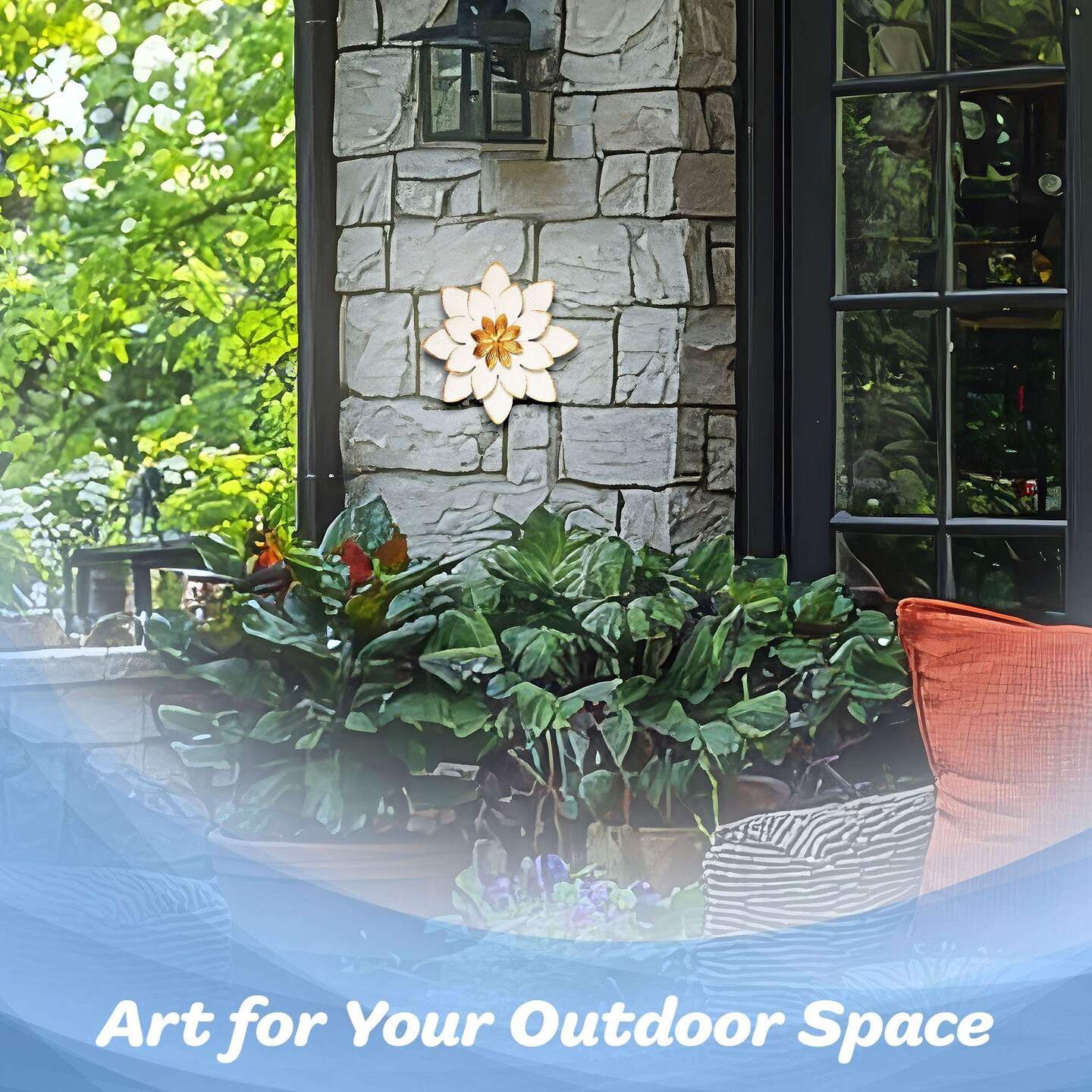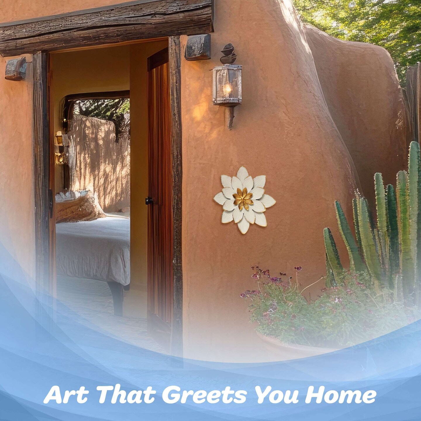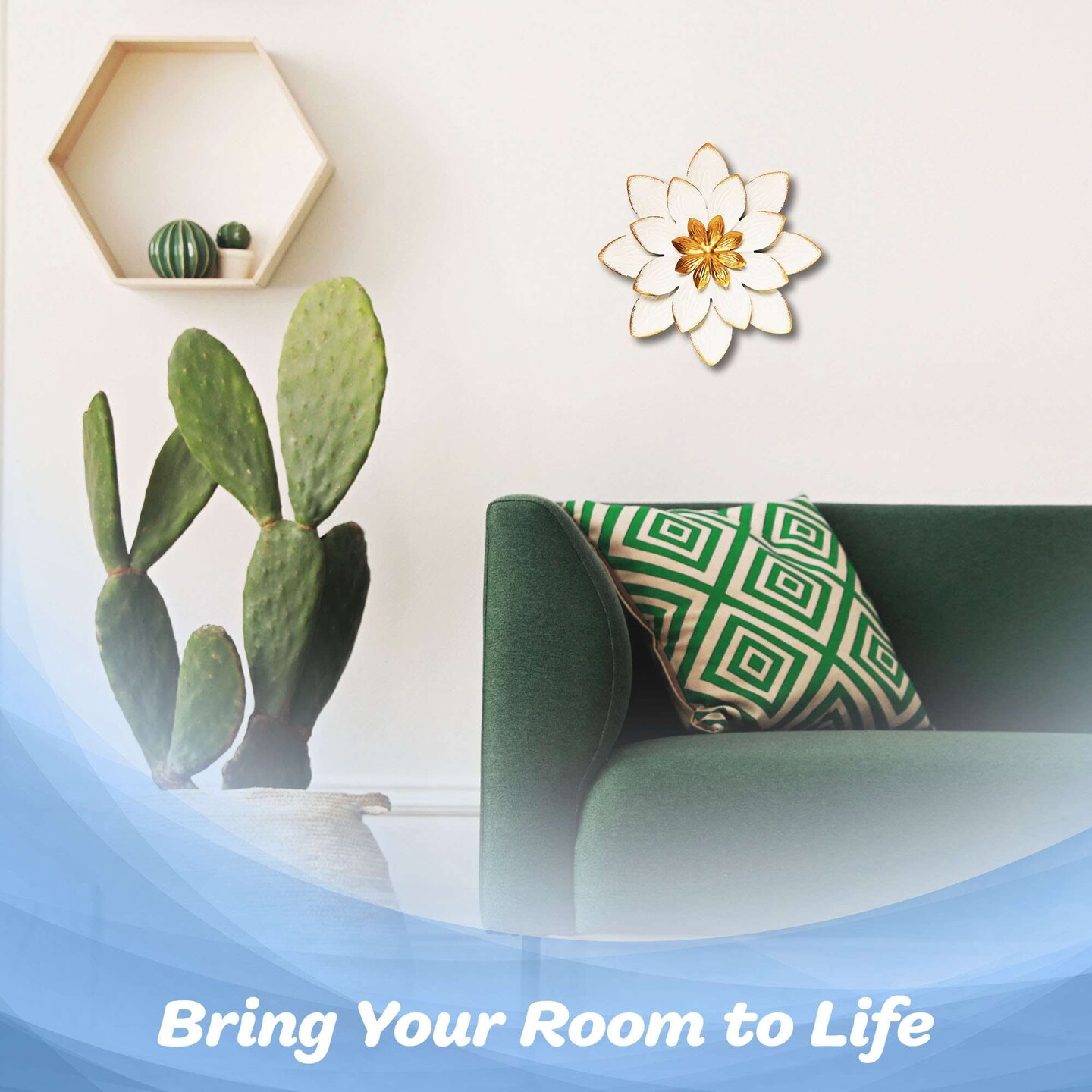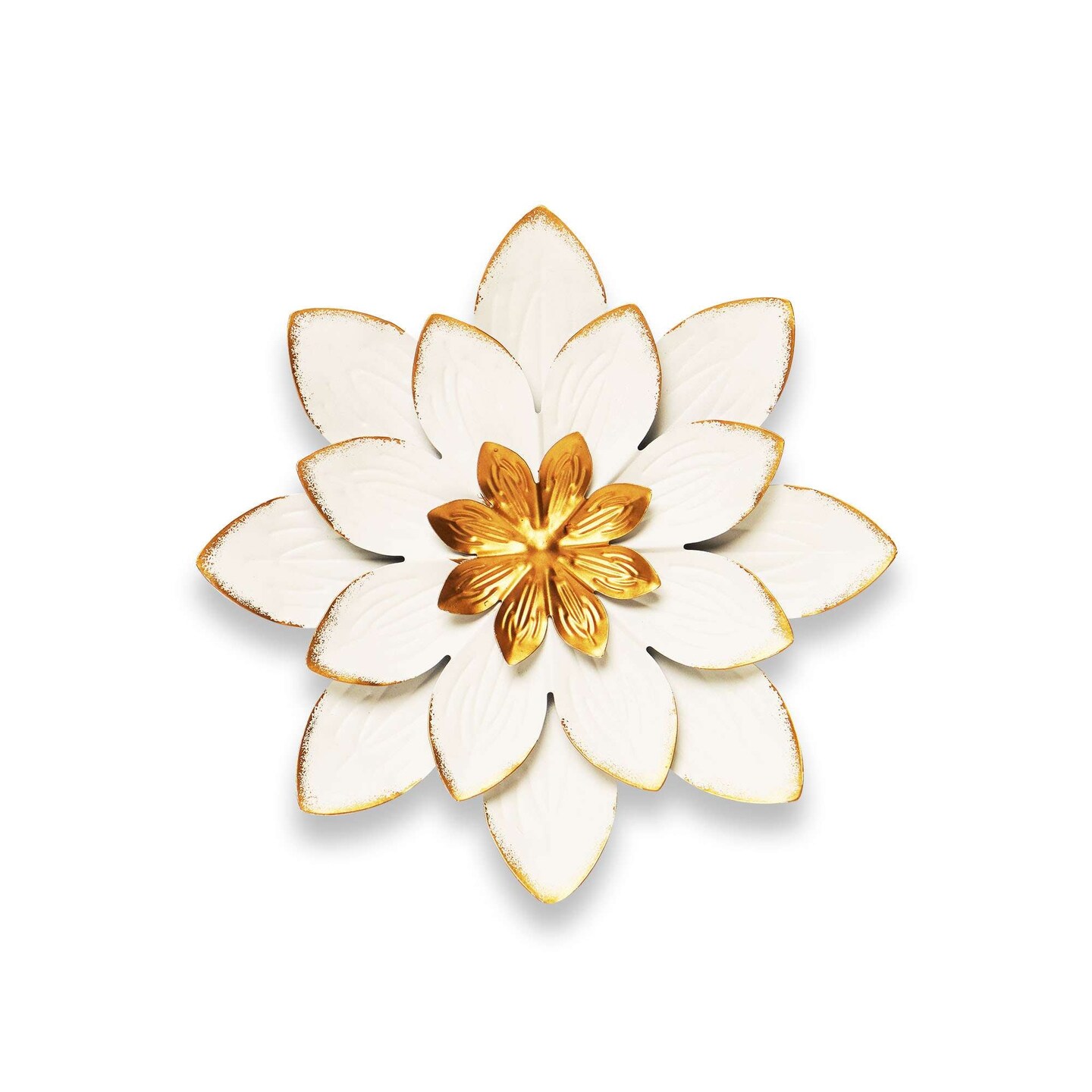 G128 9 IN White and Gold Flower Metal Wall Art Decor | Elegant Floral Wall Hanging Decor for Indoor Living Room Bedroom Office Outdoor Garden Patio Yard