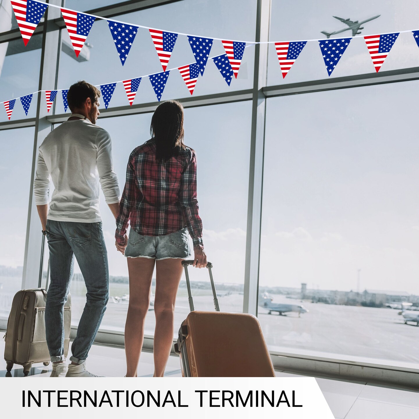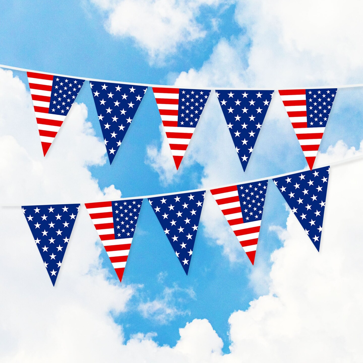 G128 American USA Pennant Banner | Flag 7 x 8 Inch, Full String 9.8 Feet | Printed 150D Polyester, Decorations For Bar, School, Festival Events Celebration (Total 10 PCS)