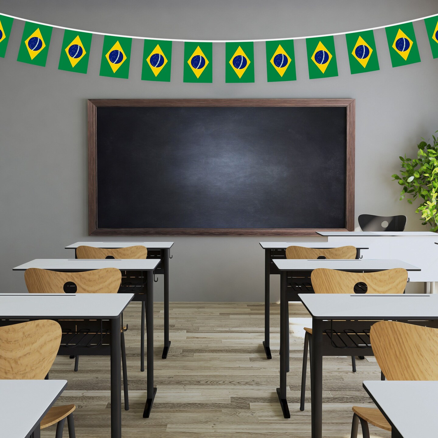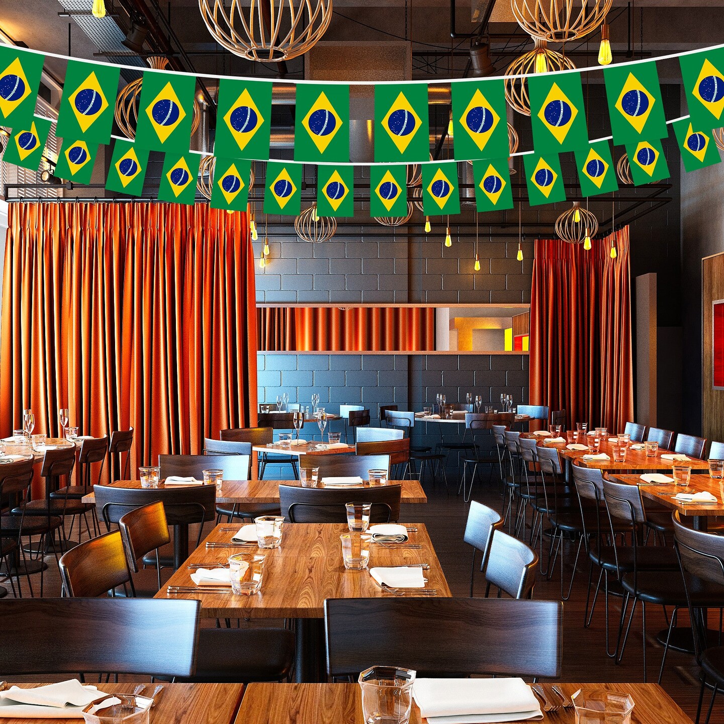 G128 Brazil Brazilian Bunting Banner | Flag 8.2 x 5.5 Inch, Full String 33 Feet | Printed 150D Polyester, Decorations For Bar, School, Festival Events Celebration