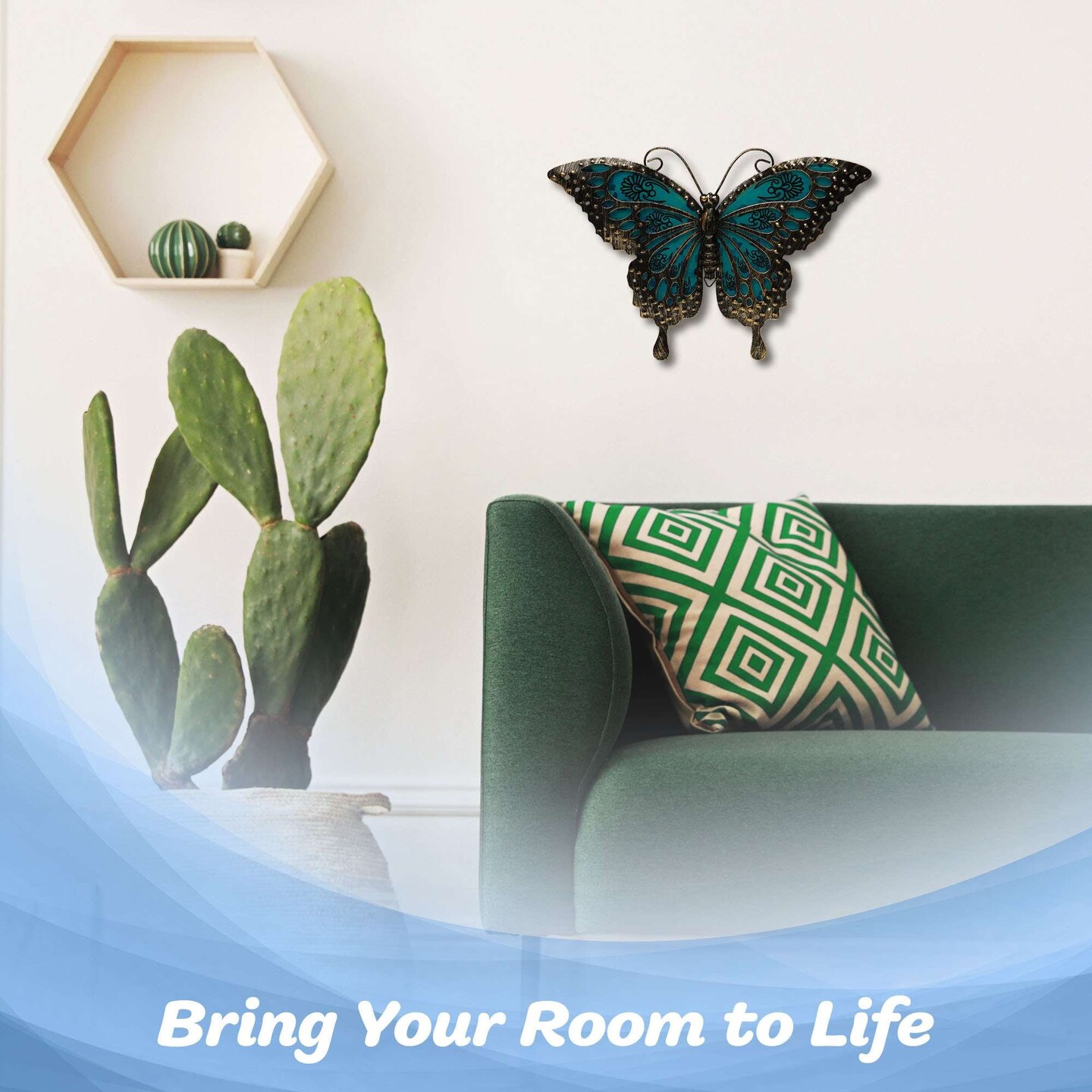G128 Butterfly Metal Wall Art Decor | Black and Green Butterfly Indoor Outdoor Wall Art Hanging Decor for Bedroom, Living Room, Garden, Patio
