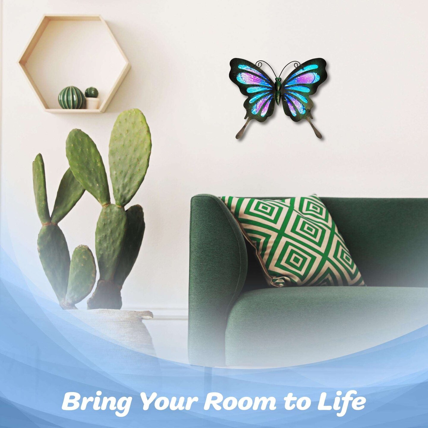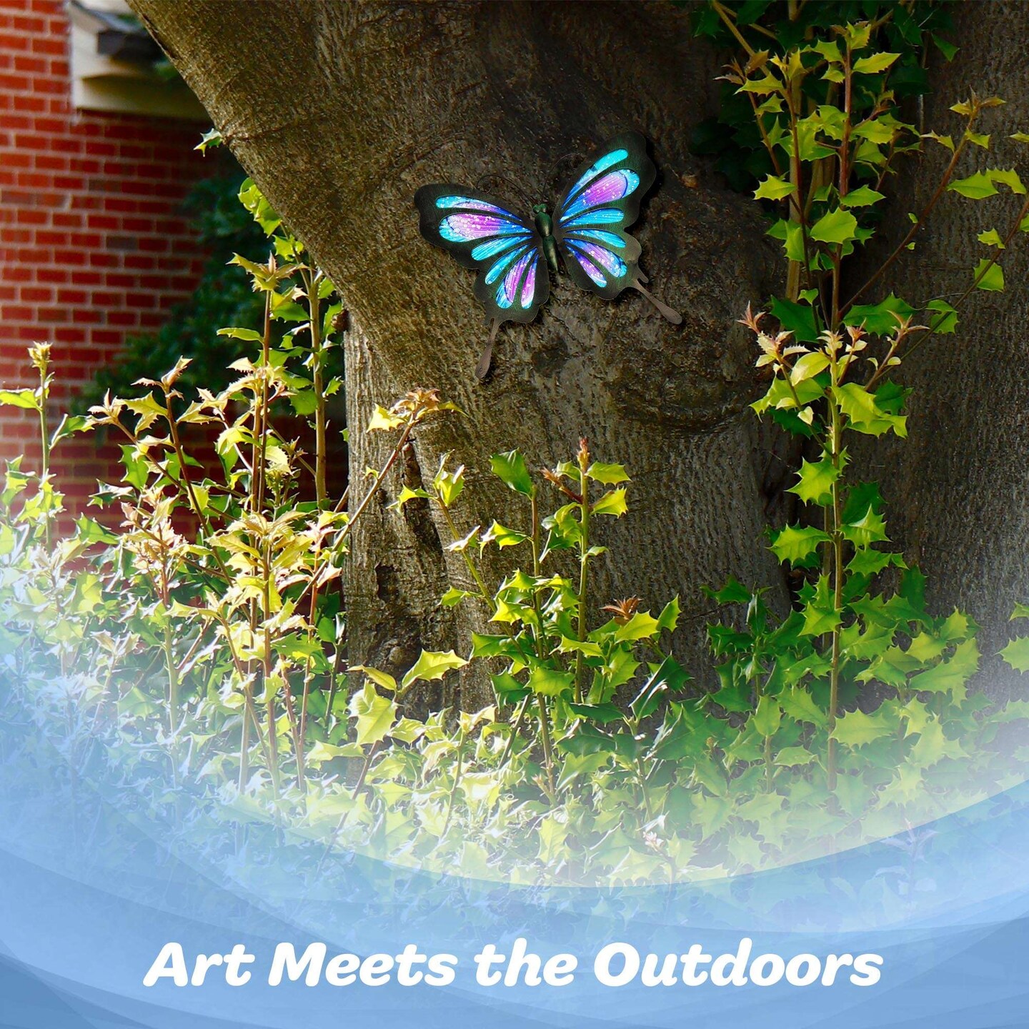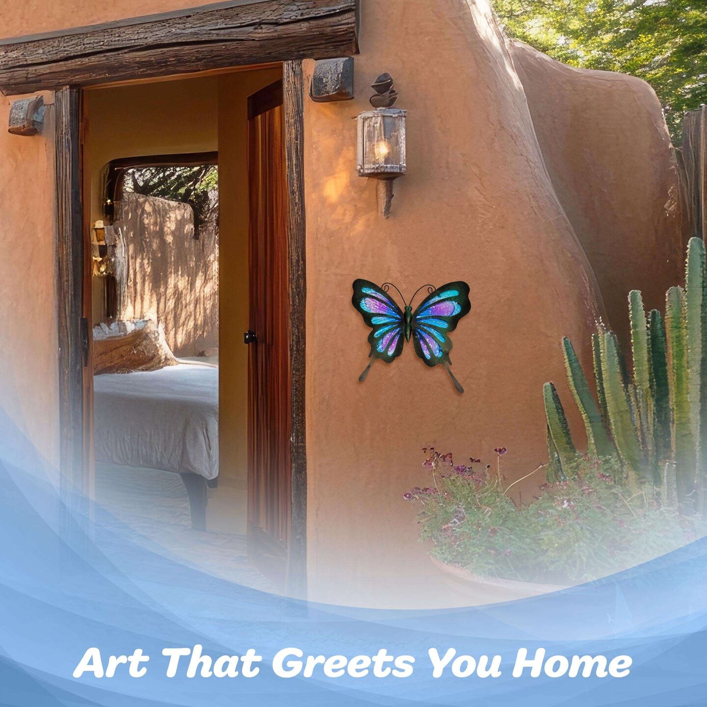G128 Butterfly Metal Wall Art Decor | Blue and Purple Butterfly Indoor Outdoor Wall Art Hanging Decor for Bedroom, Living Room, Garden, Patio