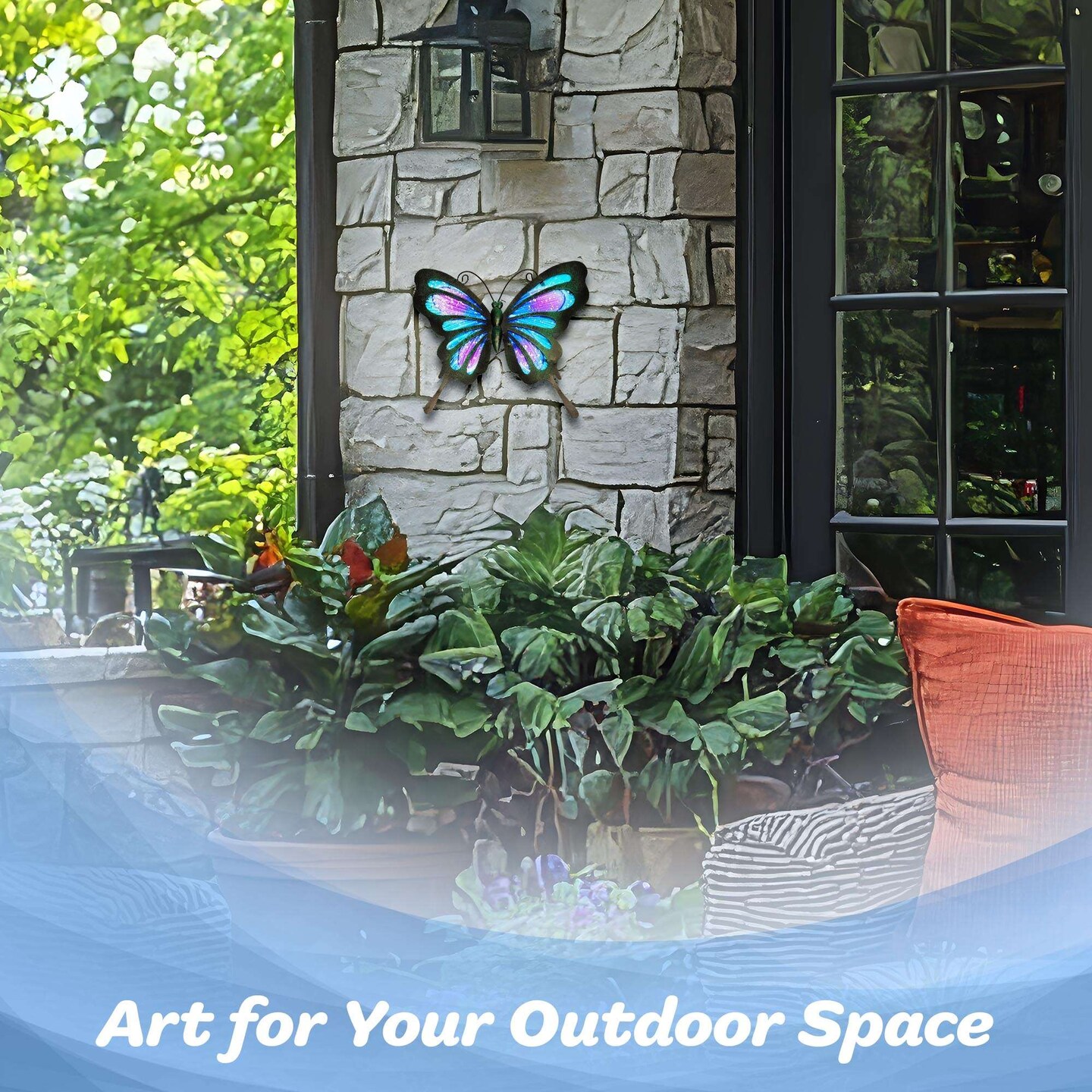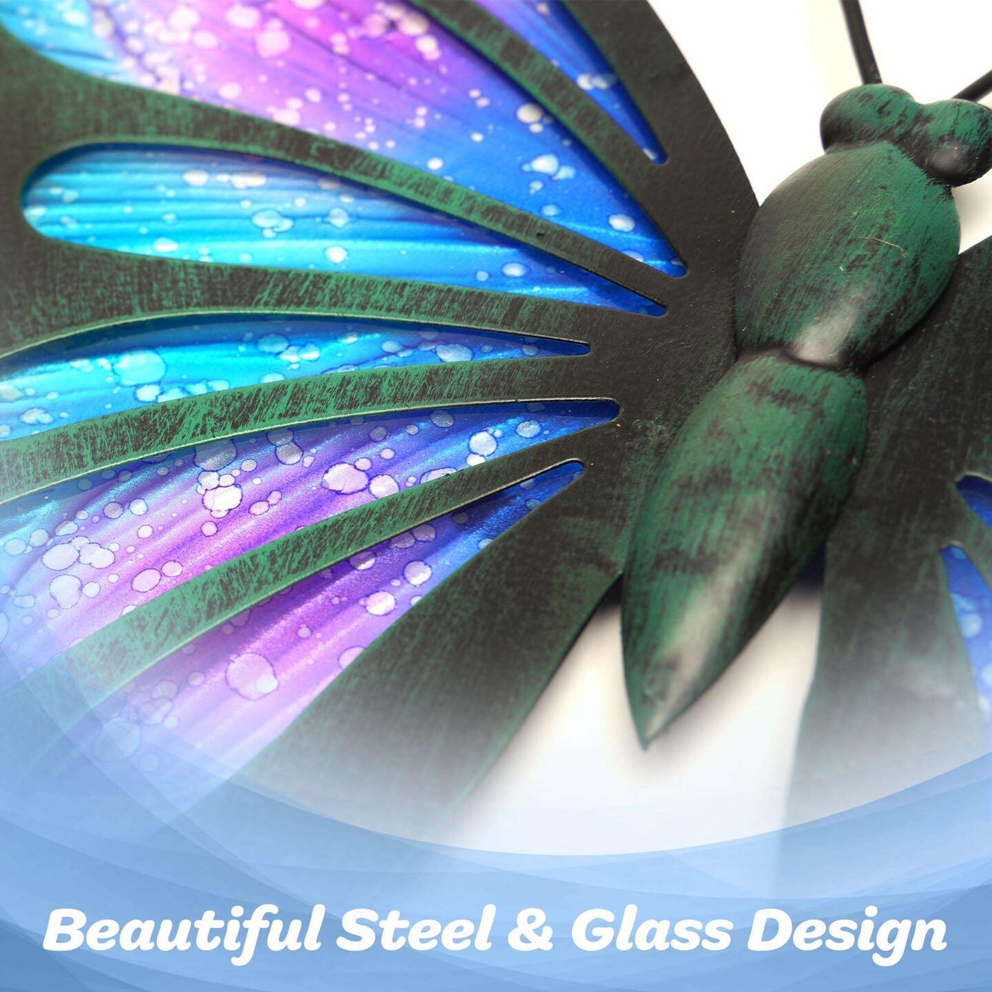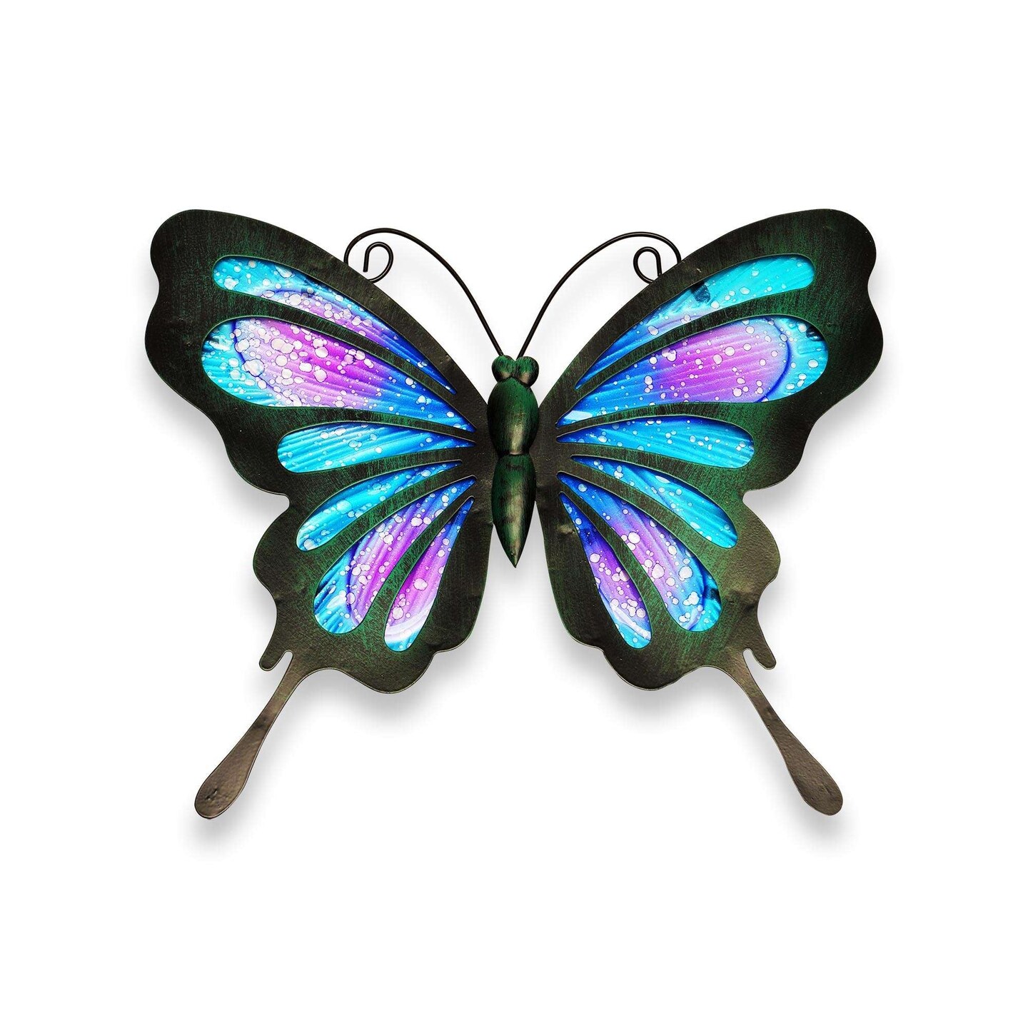 G128 Butterfly Metal Wall Art Decor | Blue and Purple Butterfly Indoor Outdoor Wall Art Hanging Decor for Bedroom, Living Room, Garden, Patio
