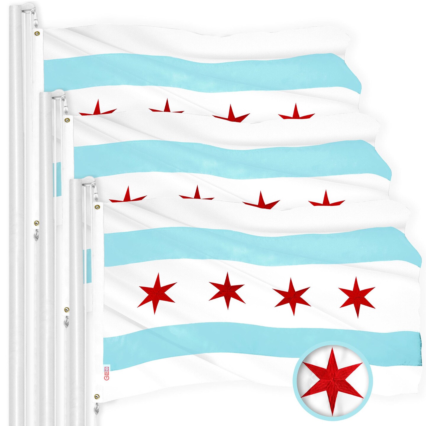 G128 Chicago Flag 4x6 Ft 3-Pack Embroidered 300D Embroidered Stars, Sewn Stripes, Brass Grommets, Indoor/Outdoor, Vibrant Colors, Quality Polyester