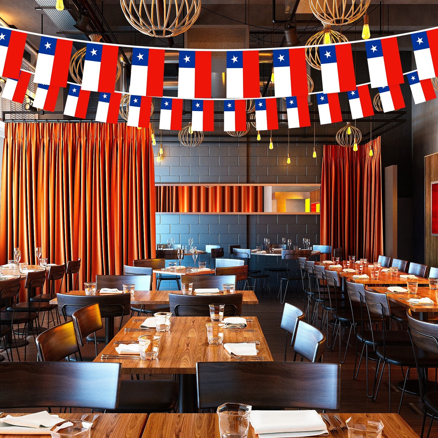 G128 Chile Chilean Bunting Banner | Flag 8.2 x 5.5 Inch, Full String 33 Feet | Printed 150D Polyester, Decorations For Bar, School, Festival Events Celebration