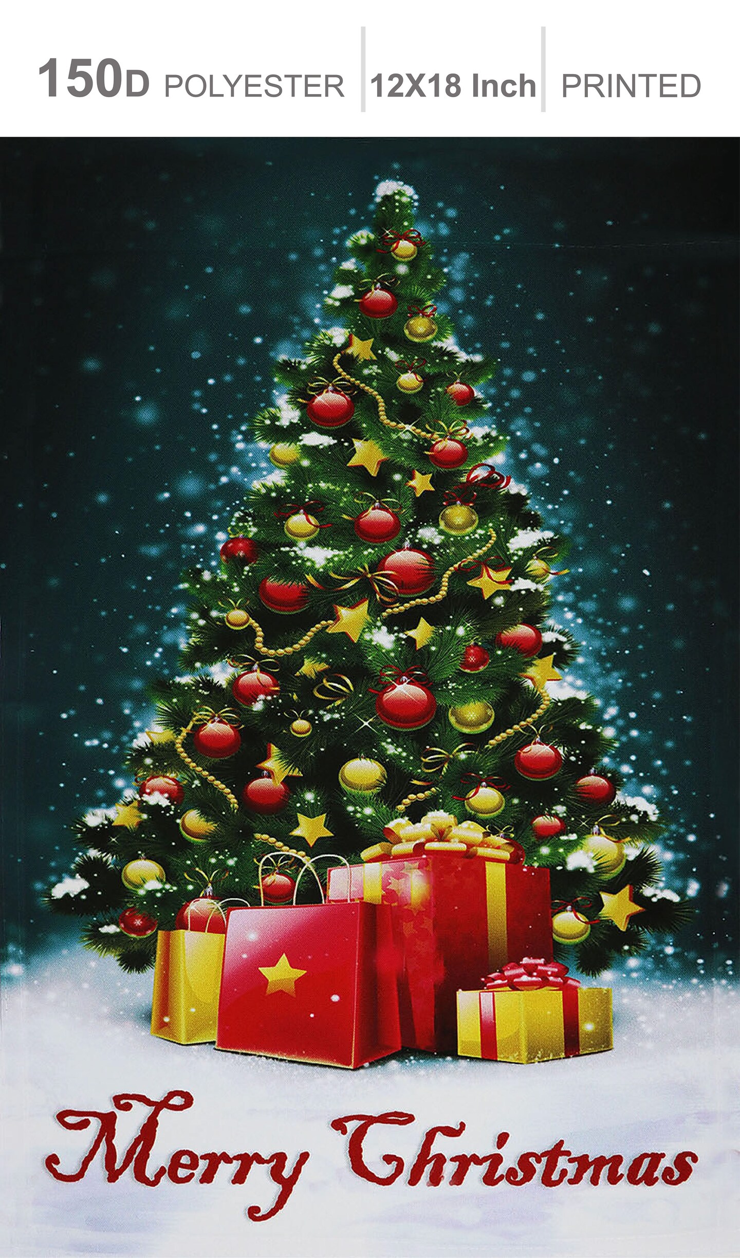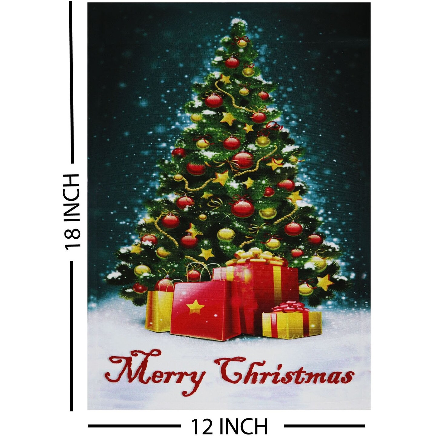 G128 - Christmas Garden Flag, Christmas and Winter Themed Decorations - Christmas Tree with Merry Christmas Quote, | 12x18 Inch | Printed 150D Polyester - Rustic Holiday Seasonal Outdoor Flag