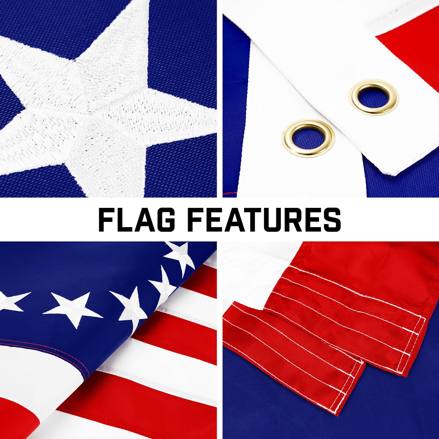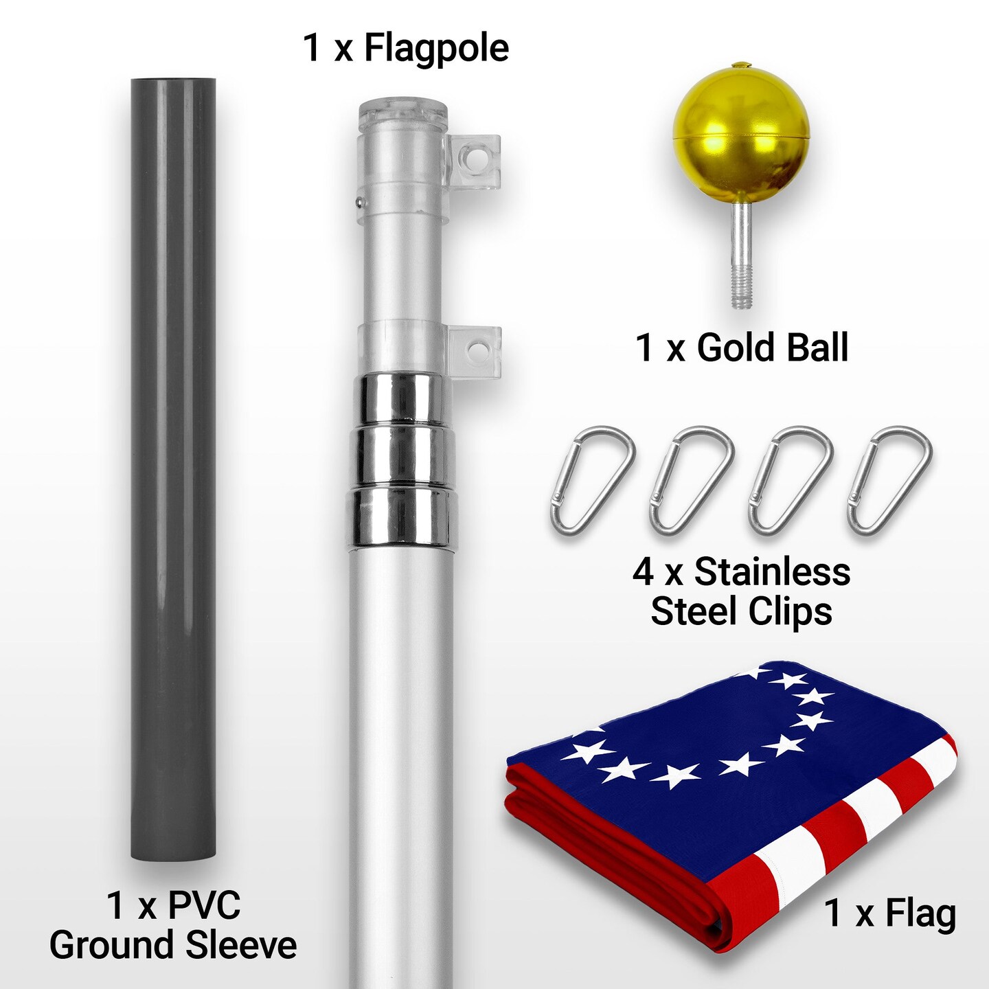 G128 Combo Pack: 16 Ft Telescoping Aluminum Flagpole (Silver) & Betsy Ross Flag 3x5 Ft, ToughWeave Series Embroidered 300D Polyester | Pole with Flag Included