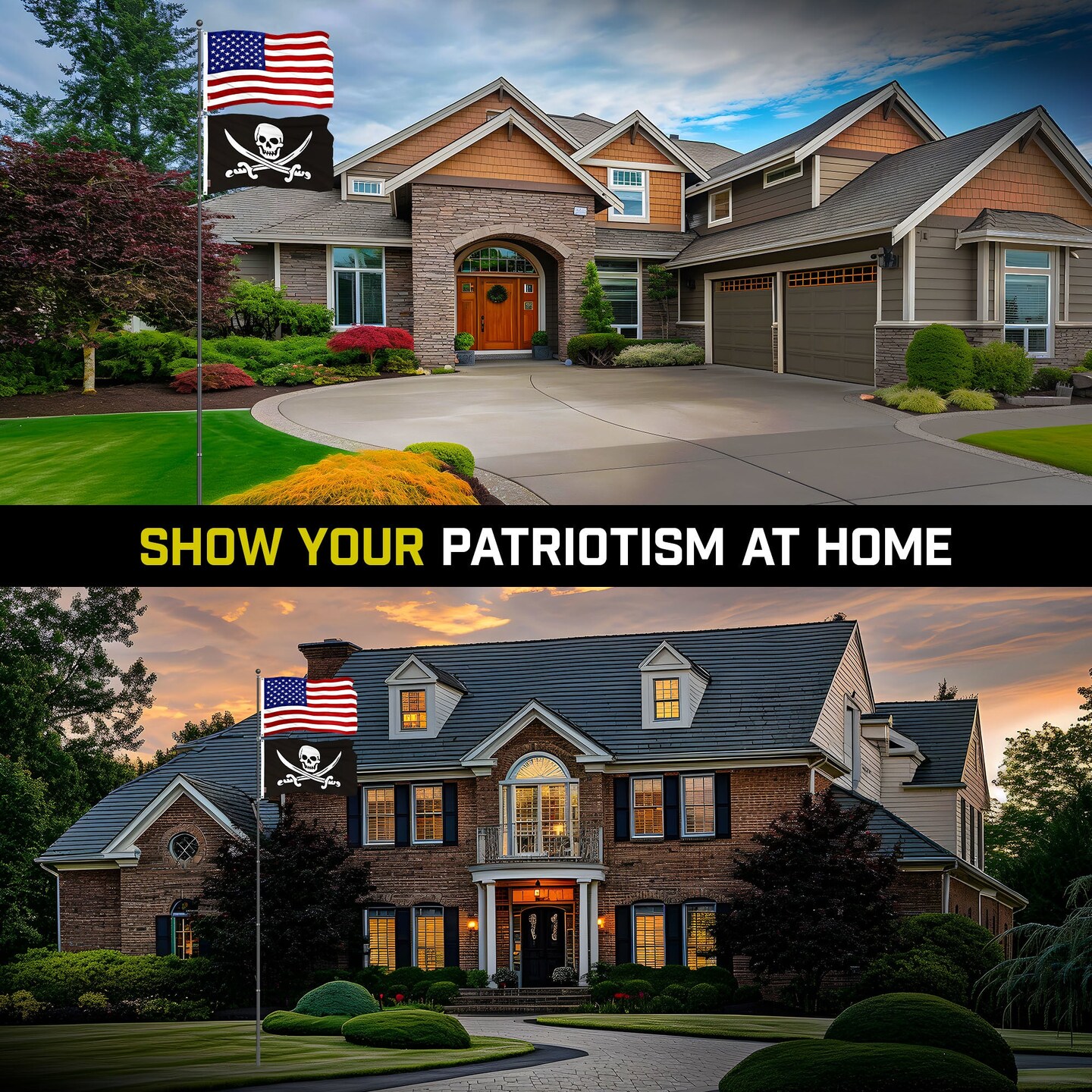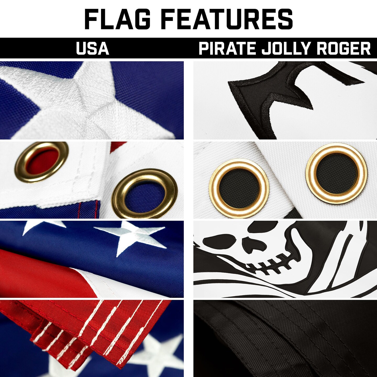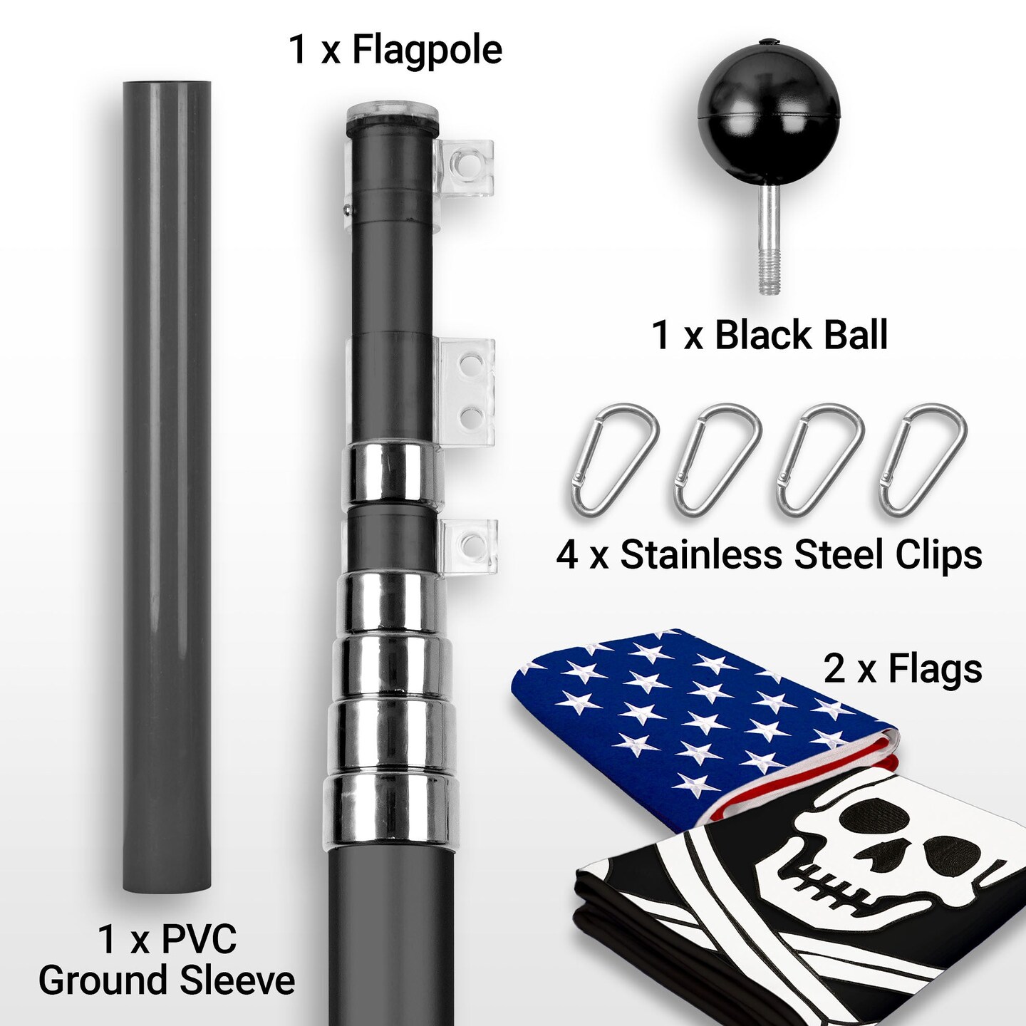 G128 Combo Pack: 20 Ft Telescoping Aluminum Flagpole (Black) & American and Pirate Jolly Roger Swords Flags 3x5 Ft, Both ToughWeave Series Embroidered Polyester | Pole with Flags Included