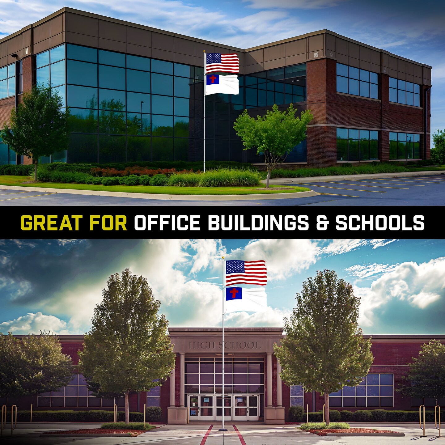 G128 Combo Pack: 25 Ft Telescoping Aluminum Flagpole (Silver) & American and Christian Flags 3x5 Ft, Both ToughWeave Series Embroidered Polyester | Pole with Flags Included