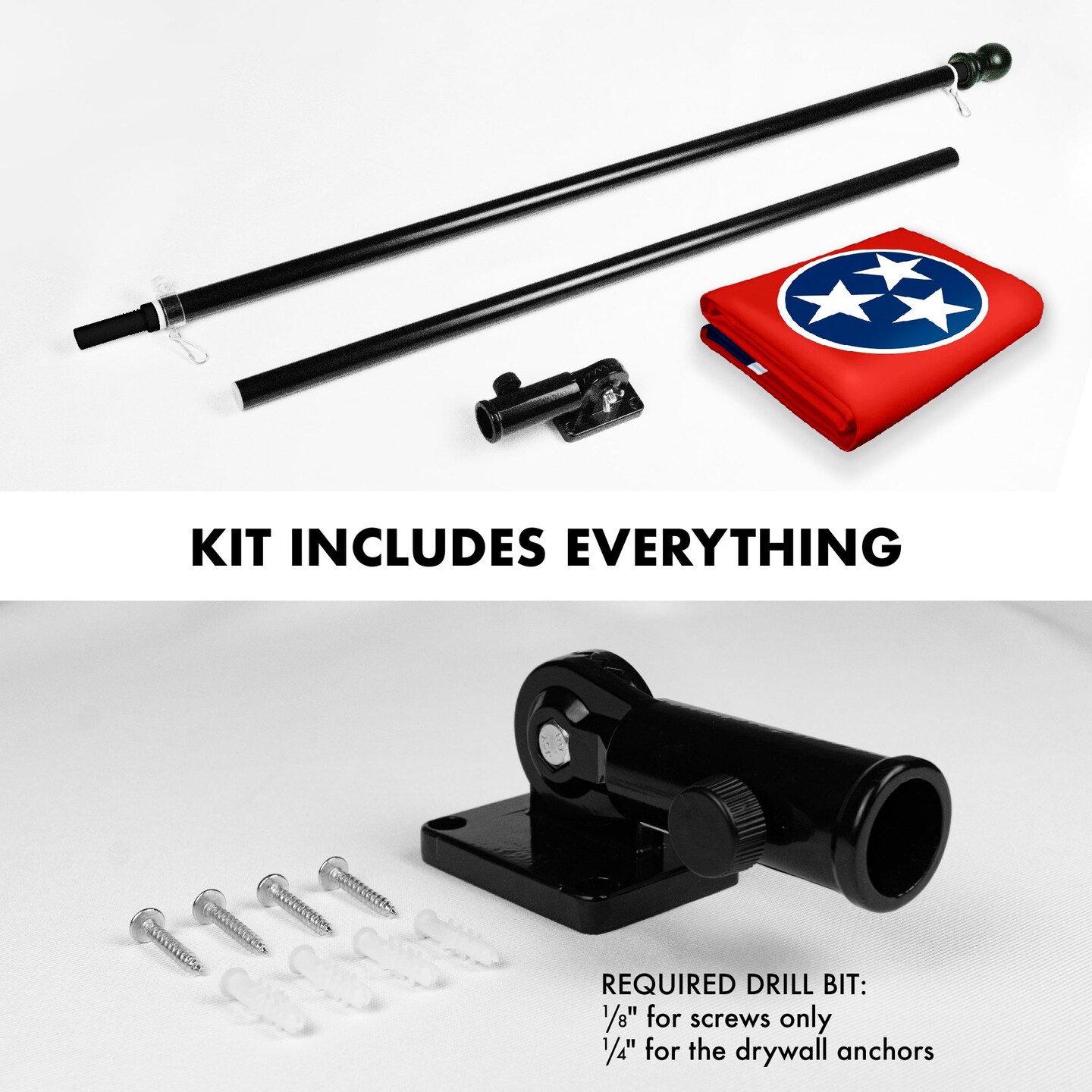 G128 Combo Pack: 6 Feet Tangle Free Spinning Flagpole (Black) Tennessee TN State Flag 3x5 ft Printed 150D Brass Grommets (Flag Included) Aluminum Flag Pole