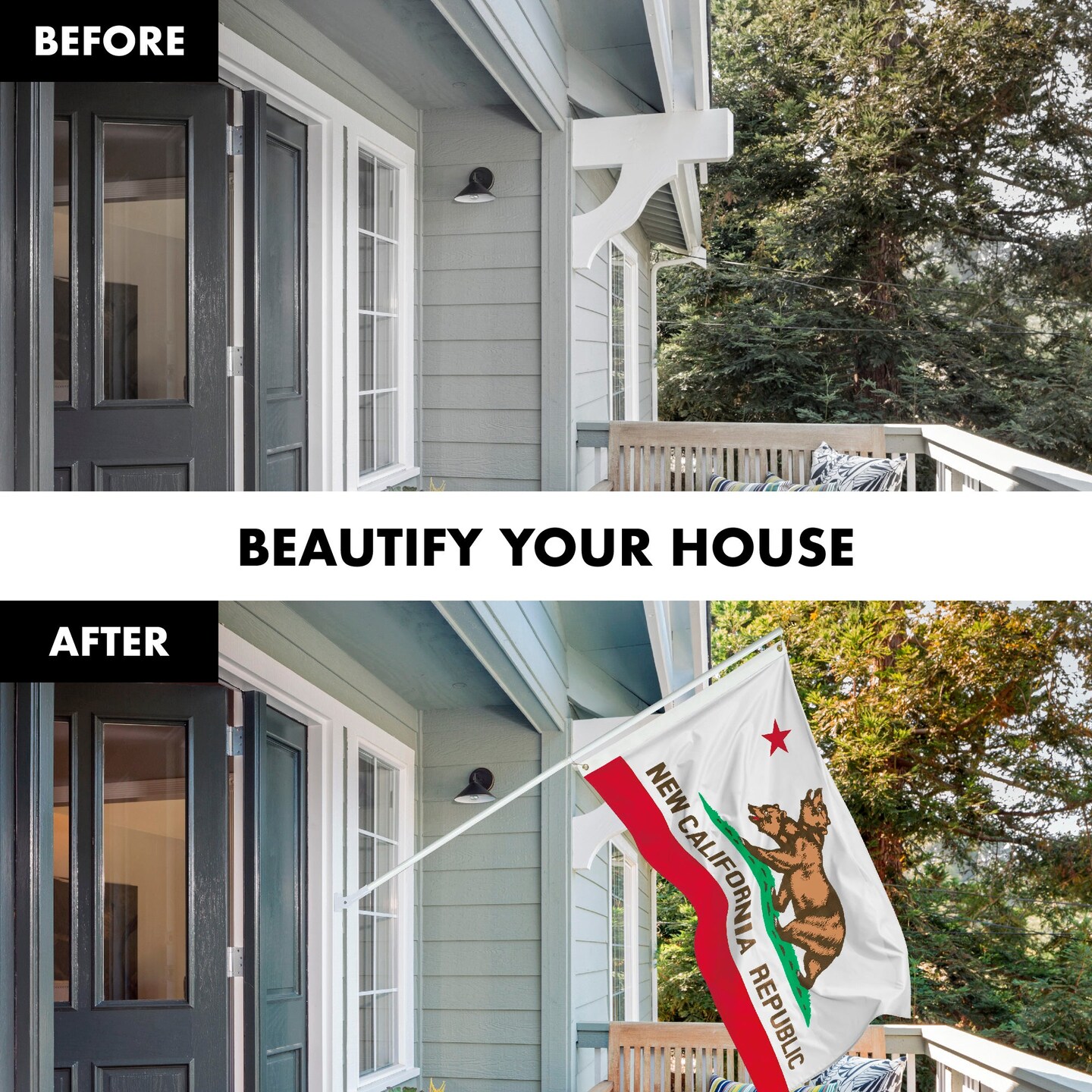 G128 Combo Pack: 6 Feet Tangle Free Spinning Flagpole (White) California Double Headed Bear Flag 3x5 ft Printed 150D Brass Grommets (Flag Included) Aluminum Flag Pole