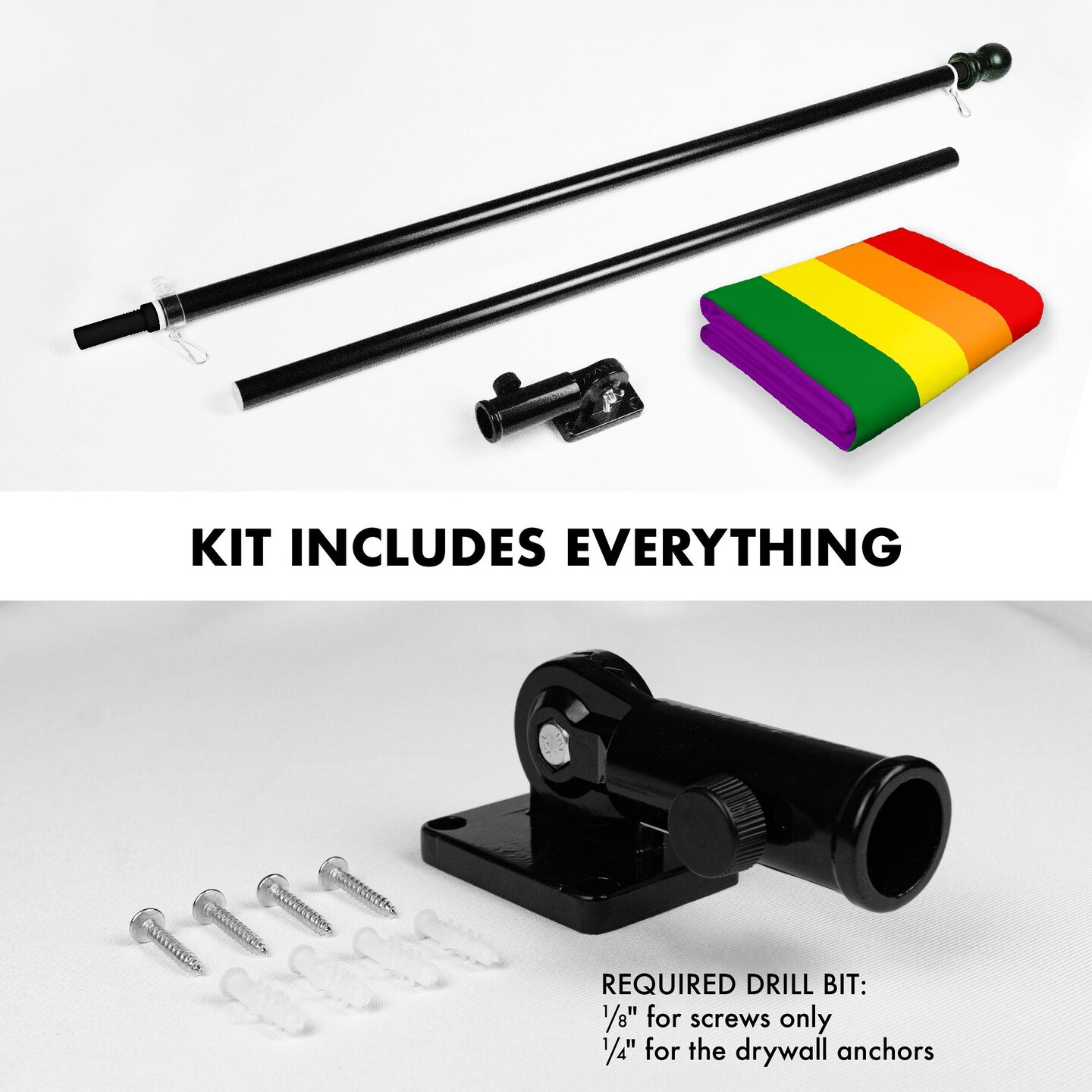 G128 Combo Pack: 6 Ft Tangle Free Aluminum Spinning Flagpole (Black) & LGBT Rainbow Pride Flag 3x5 Ft, LiteWeave Pro Series Printed 150D Polyester | Pole with Flag Included
