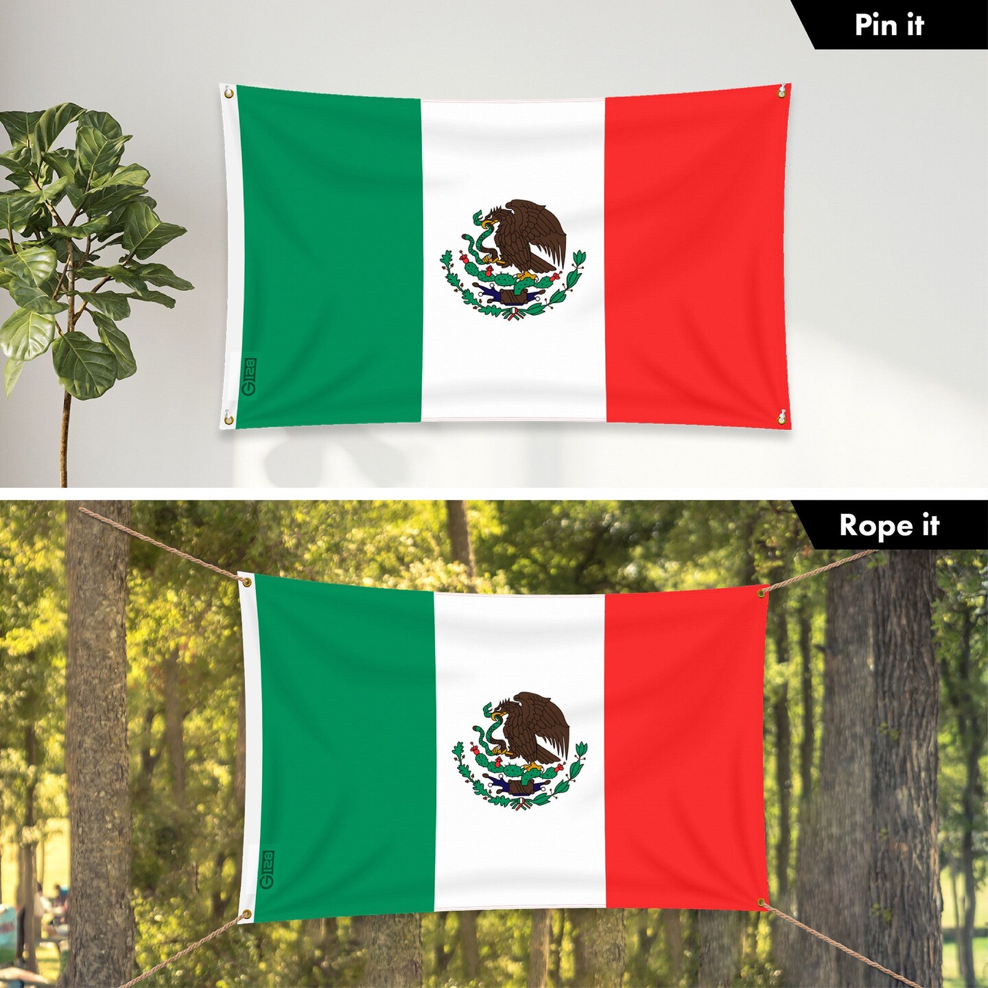 G128 Combo Pack: 6 Ft Tangle Free Aluminum Spinning Flagpole (Black) & Mexico Mexican Flag 3x5 Ft, LiteWeave Pro Series Printed 150D Polyester, 4 Corner Brass Grommets | Pole with Flag Included