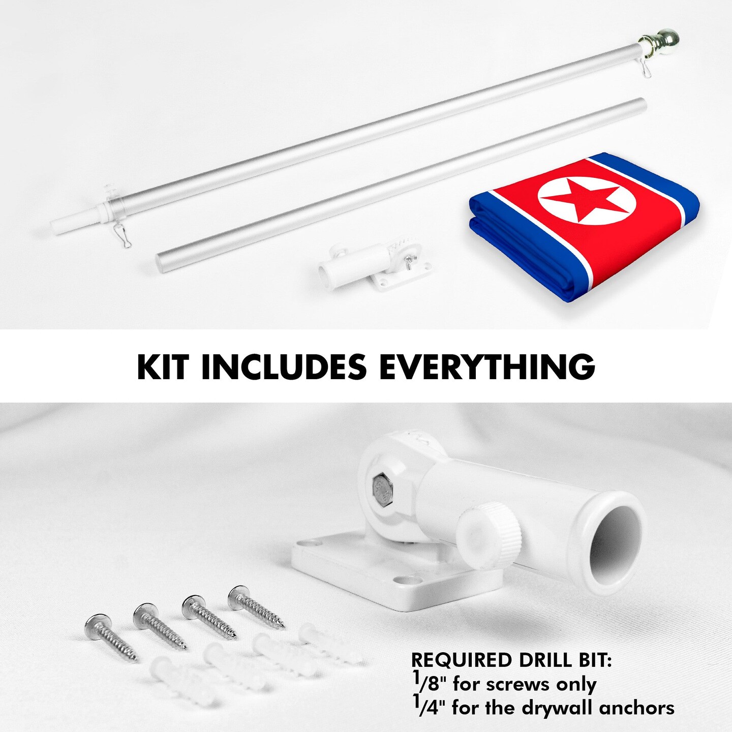 G128 Combo Pack: 6 Ft Tangle Free Aluminum Spinning Flagpole (Silver) & North Korea North Korean | 3x5 Ft | LiteWeave Pro Series Printed 150D Polyester | Pole with Flag Included