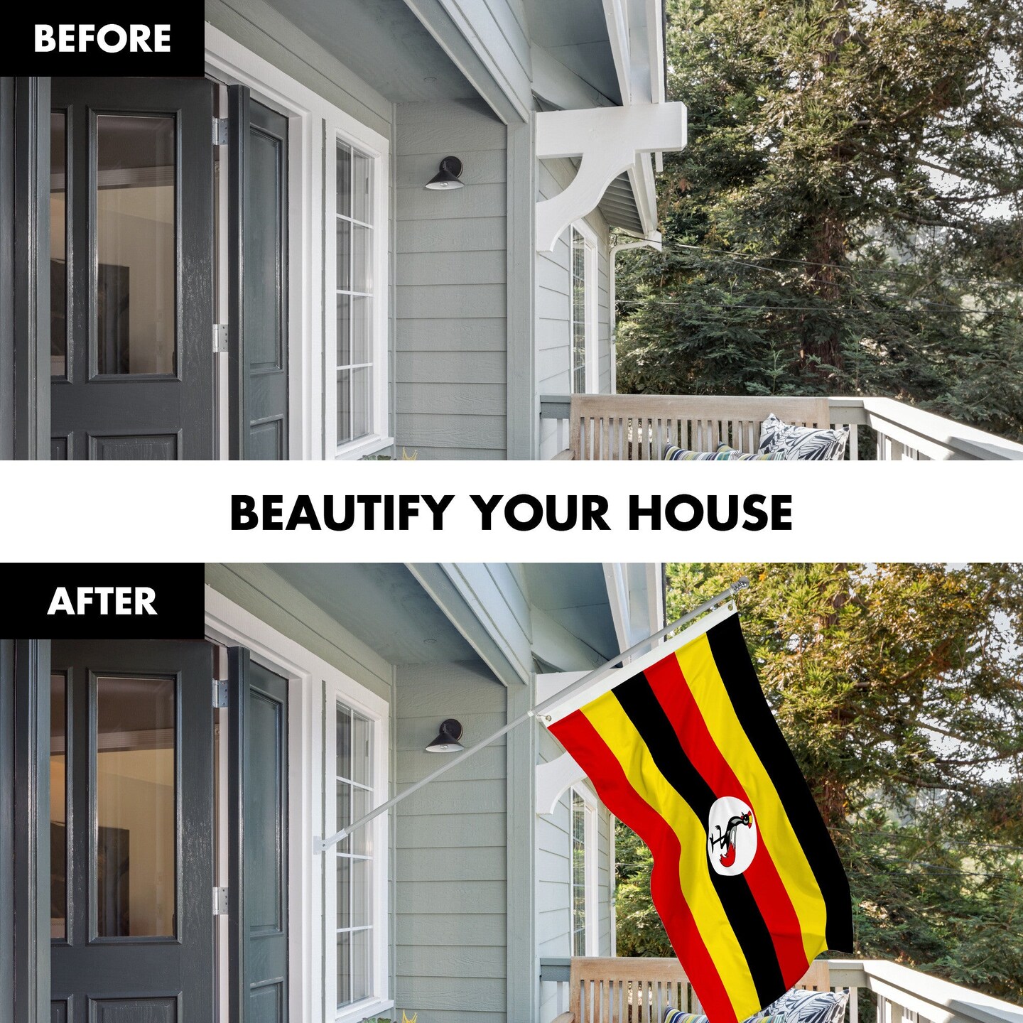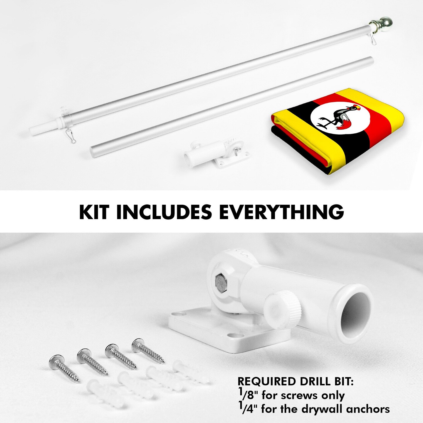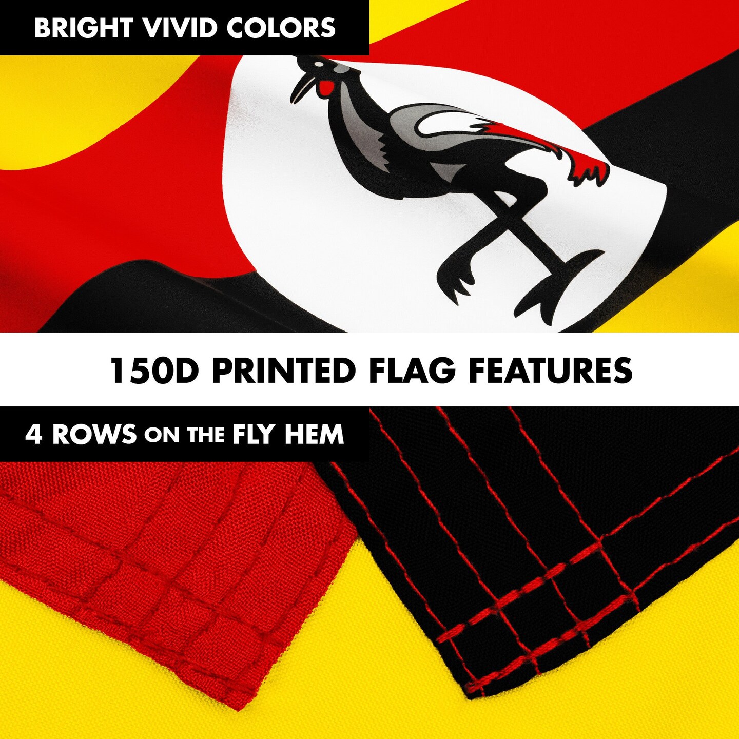 G128 Combo Pack: 6 Ft Tangle Free Aluminum Spinning Flagpole (Silver) & Uganda Ugandan | 3x5 Ft | LiteWeave Pro Series Printed 150D Polyester | Pole with Flag Included