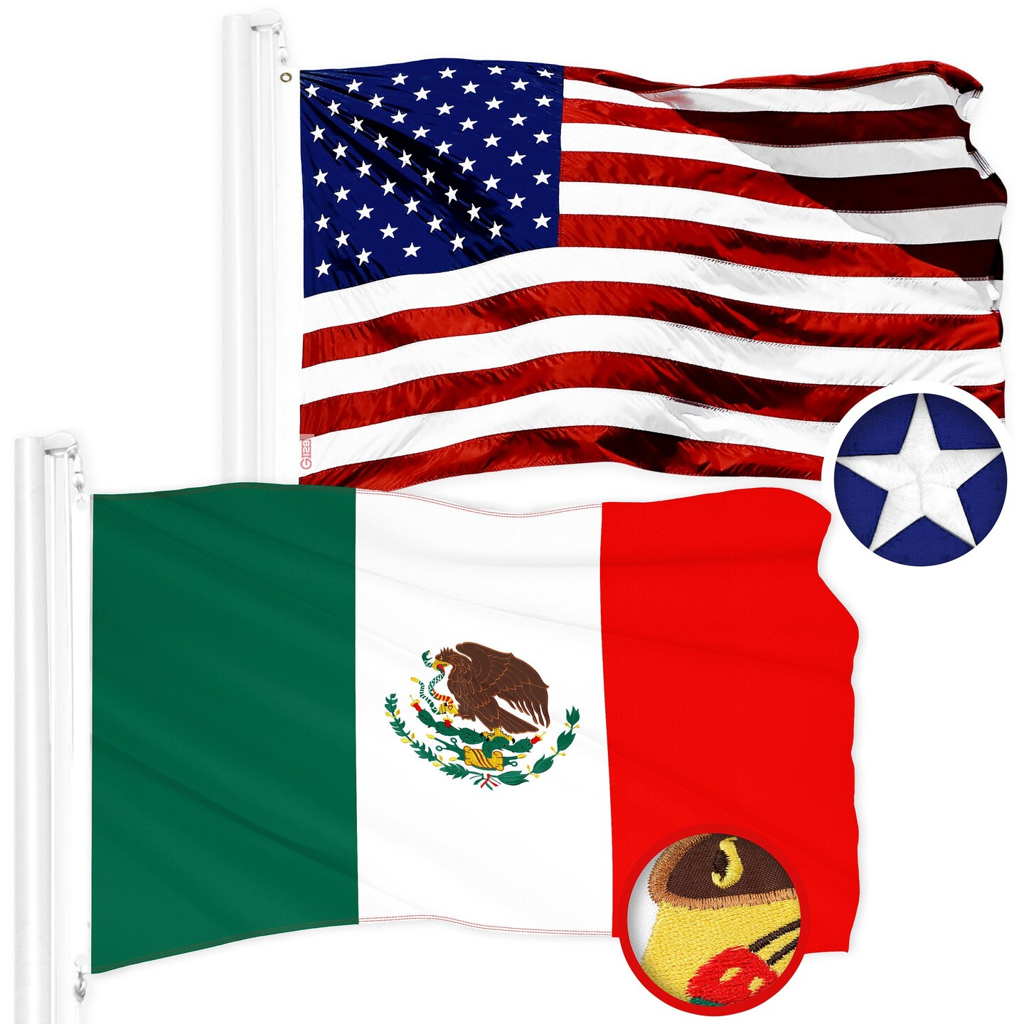 G128 Combo Pack: American USA Flag 4x6 Ft & Mexico Mexican Flag 4x6 Ft | Both ToughWeave Series Embroidered 300D Polyester, Embroidered Design, Indoor/Outdoor, Brass Grommets