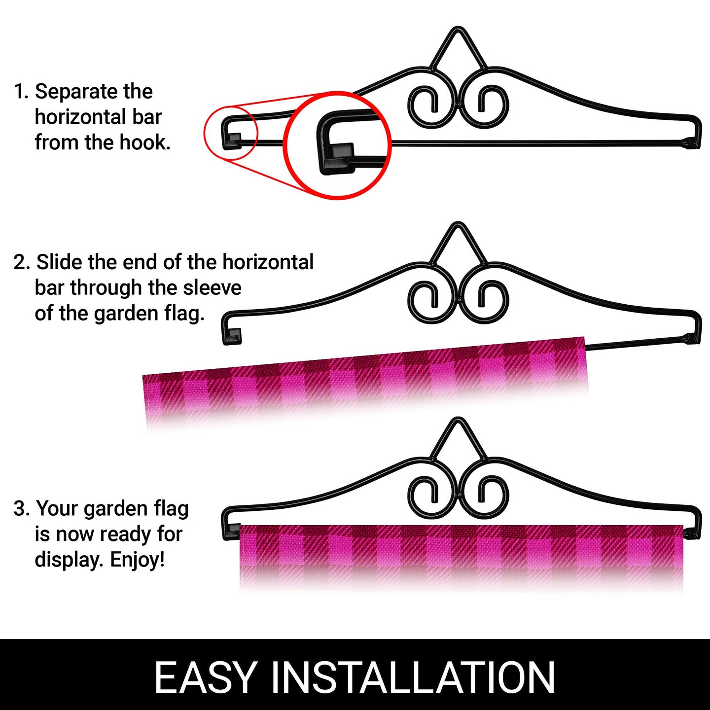 G128 Combo Pack Garden Flag Hanger 14IN & Garden Flag 3 Gnomes with Large Easter Egg 12x18IN Printed Double Sided Burlap Fabric