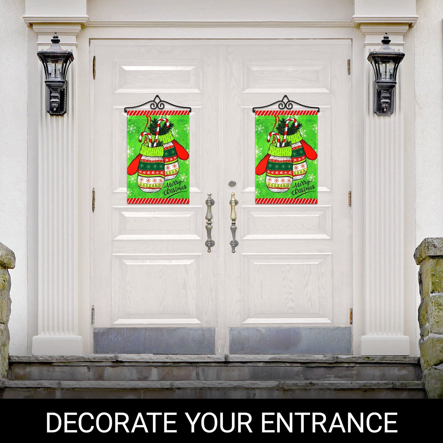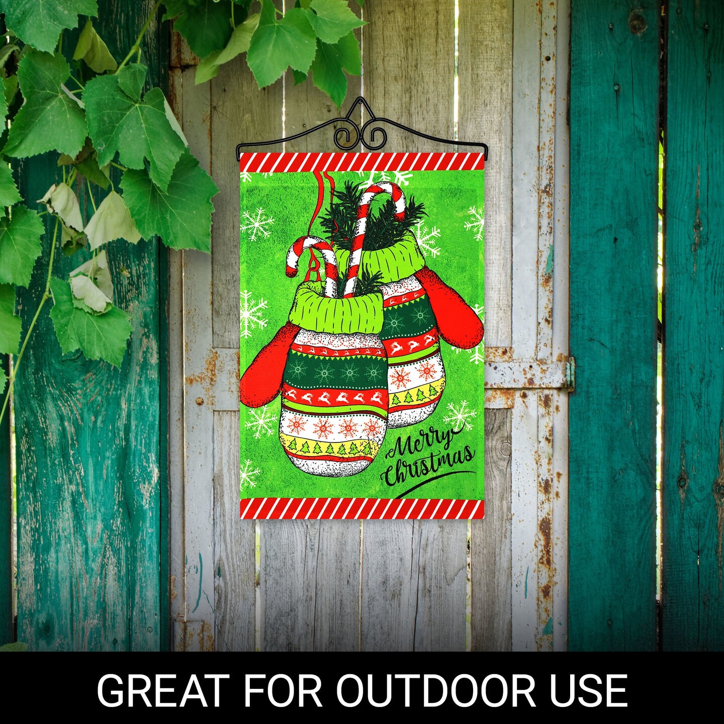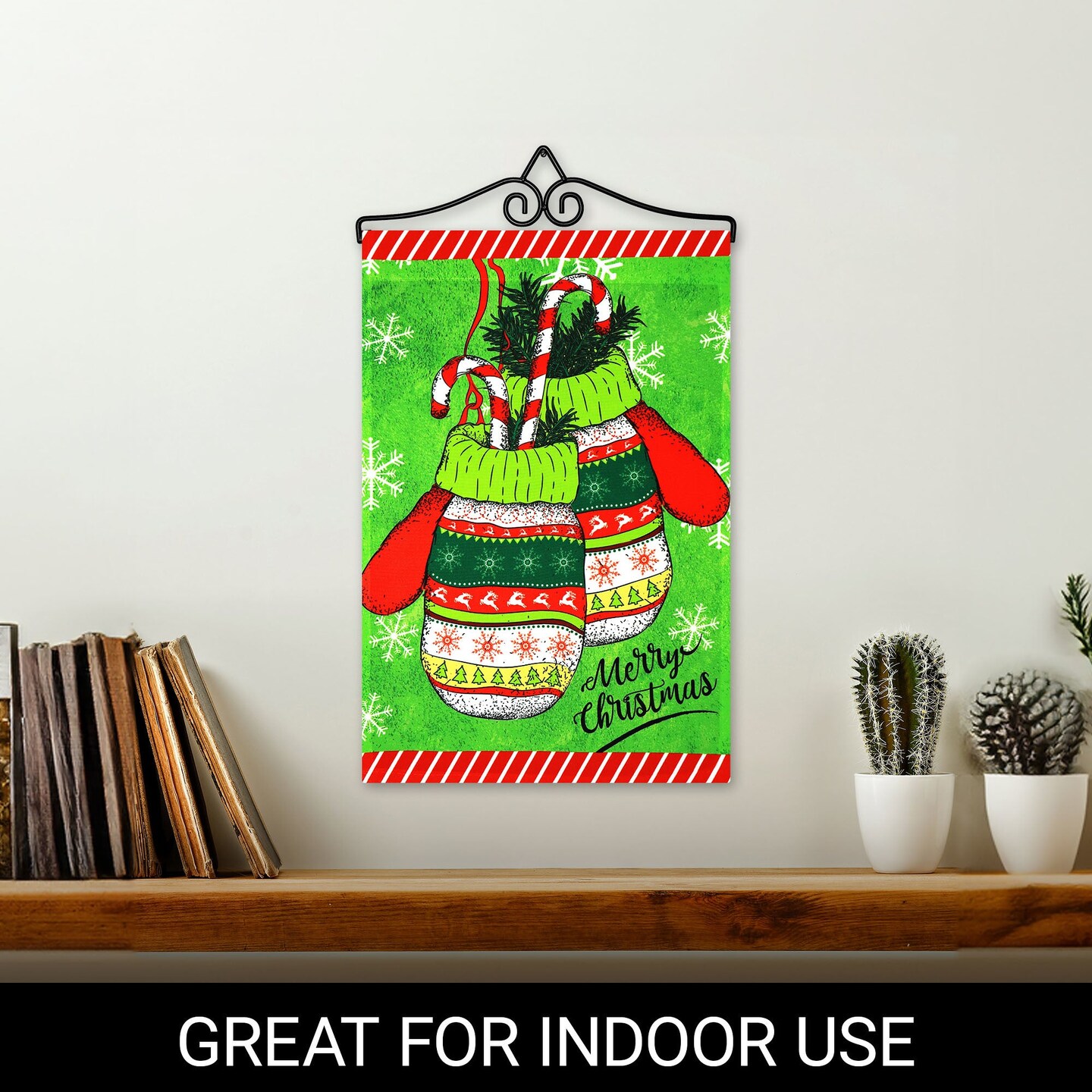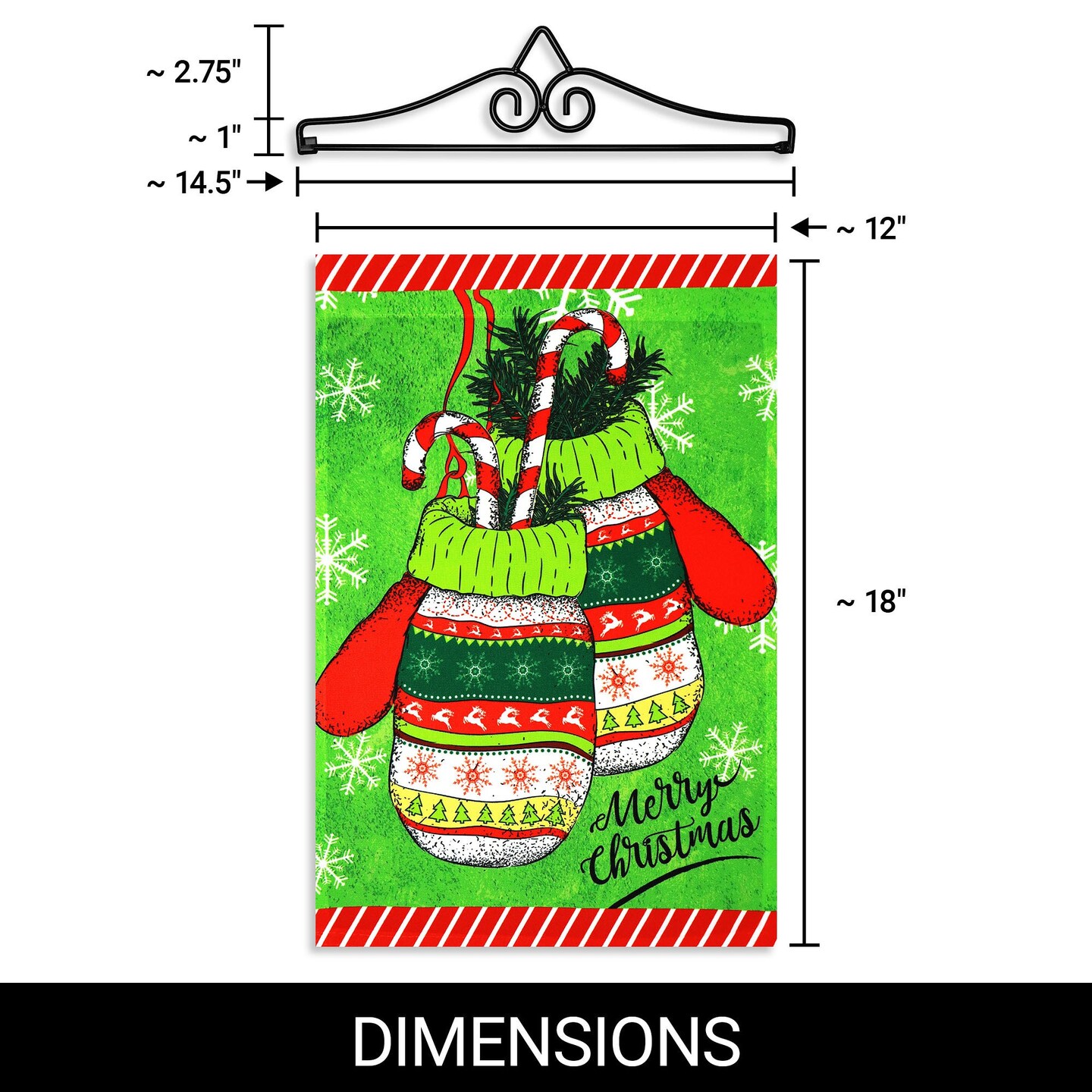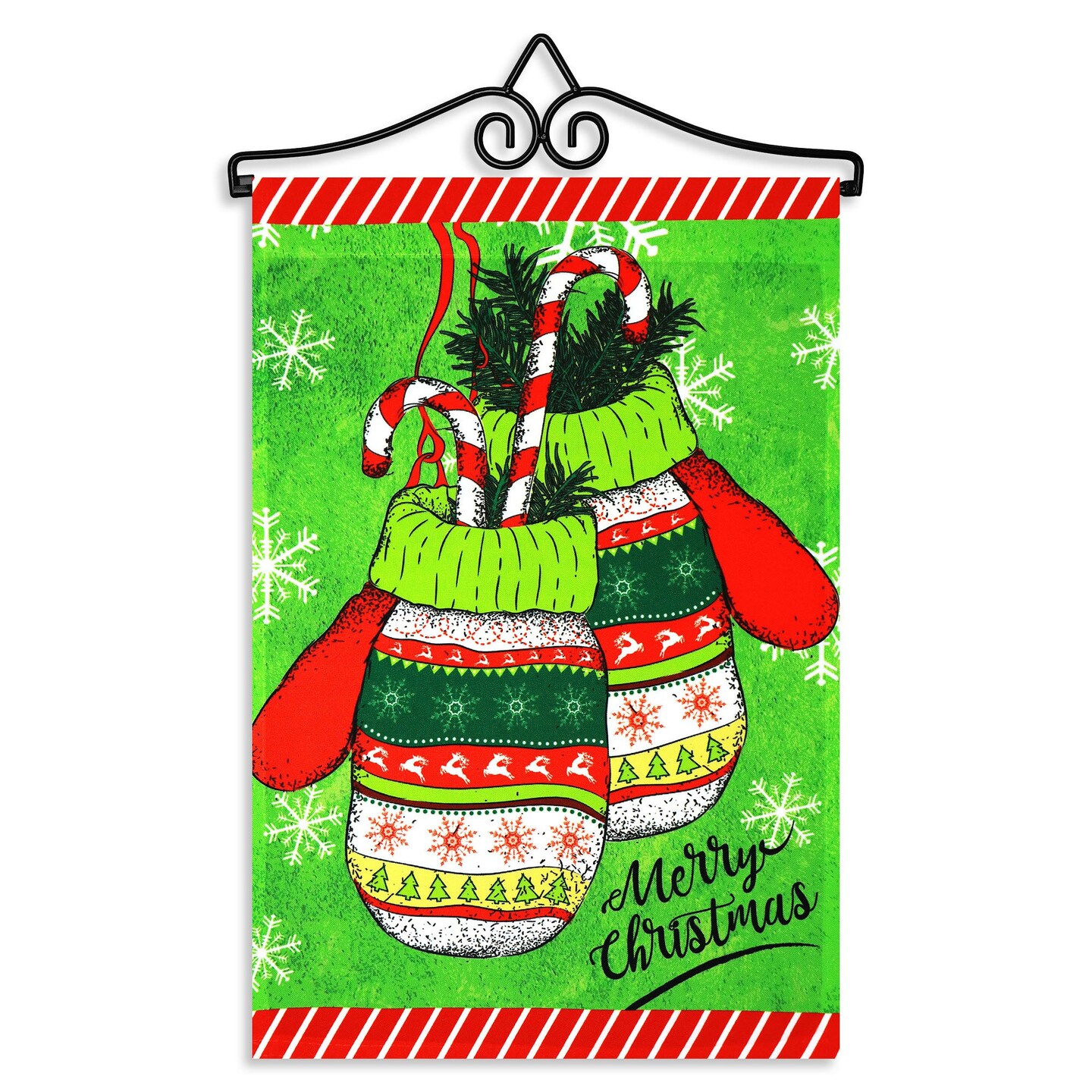 G128 Combo Pack Garden Flag Hanger 14IN & Garden Flag Merry Christmas Mittens 12x18IN Printed 150D Polyester